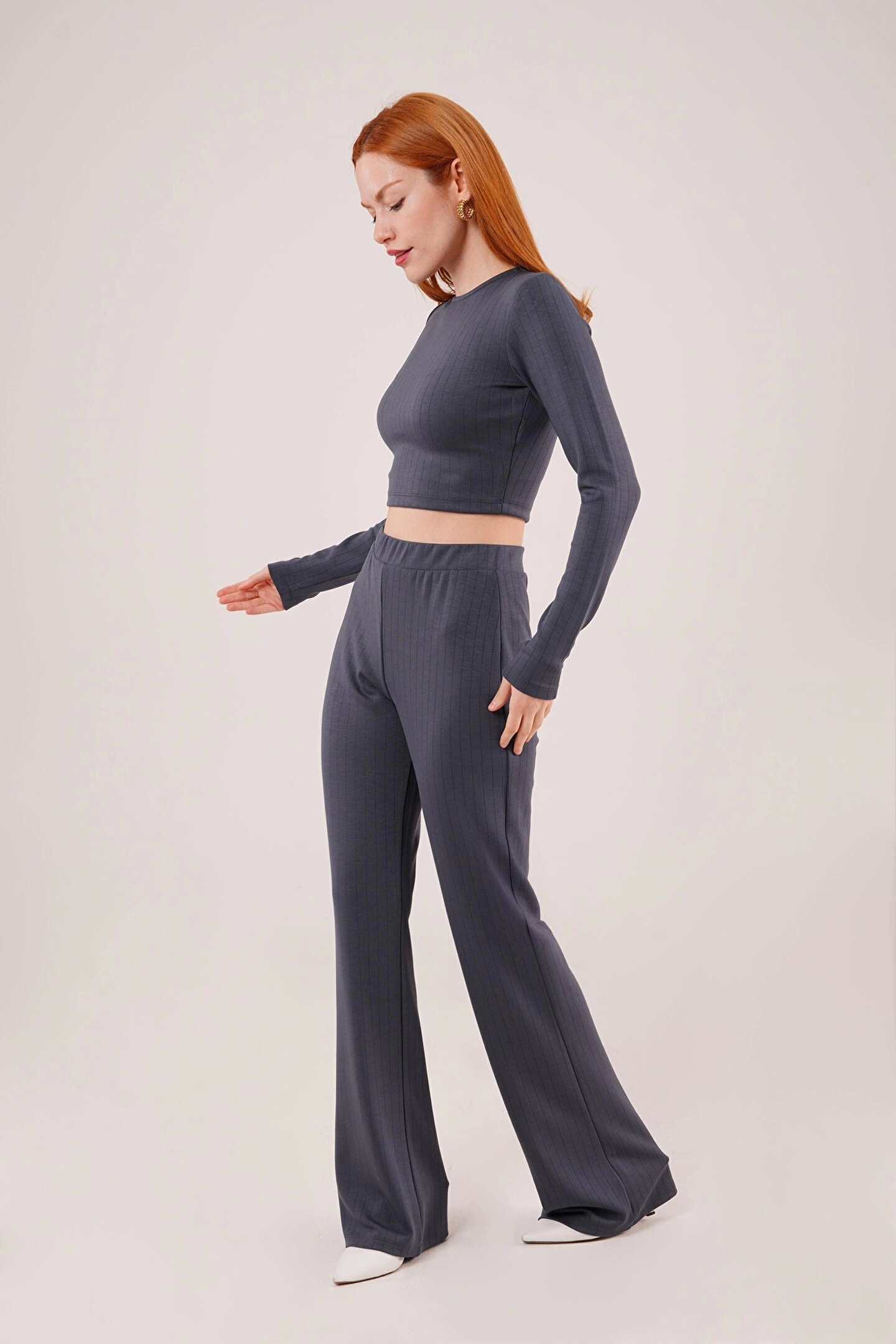 Modayakamoz Fitilli Bluz Ve Pantolon Antrasit İkili Takım