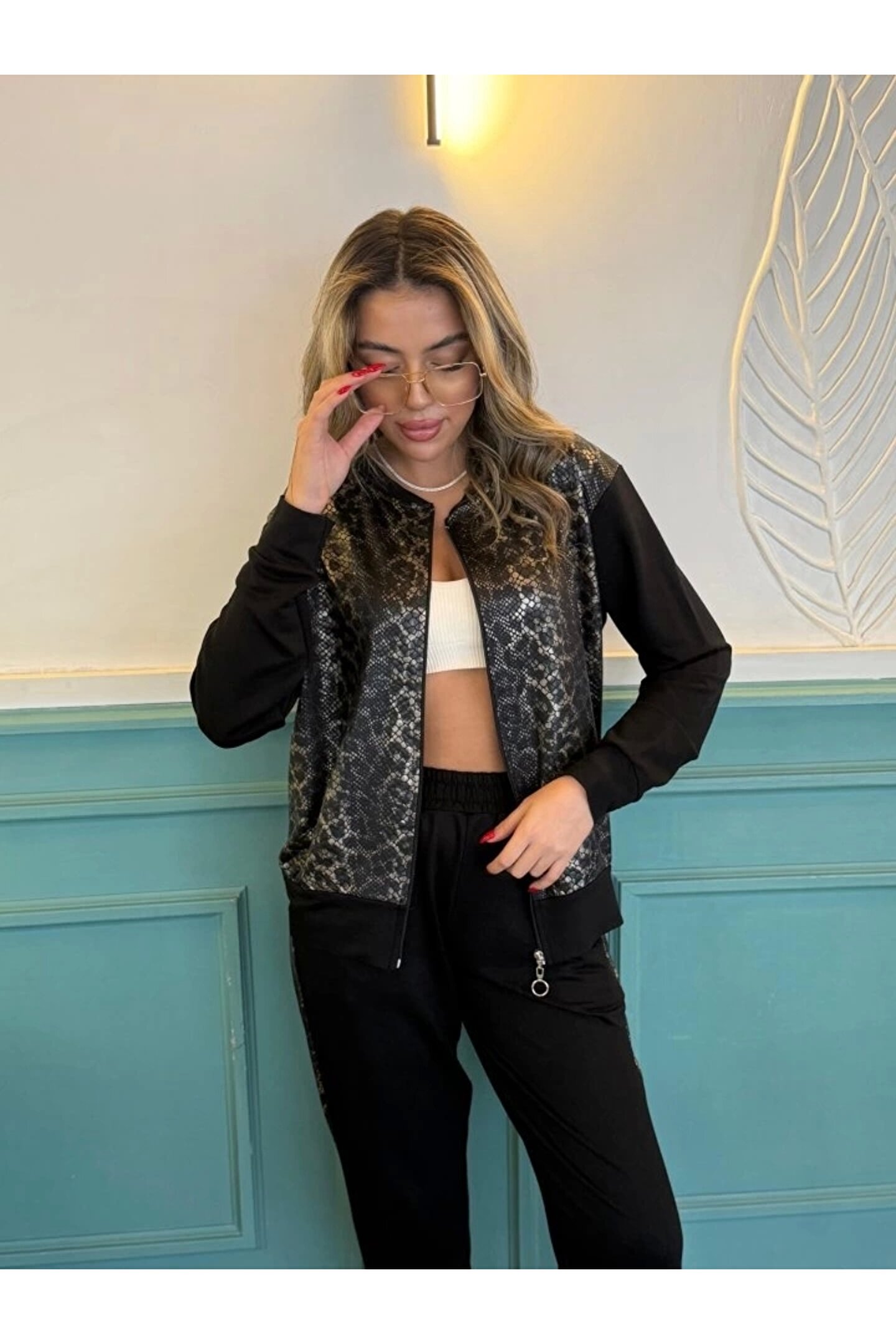 Modayakamoz Kadın İki İplik Kumaş Yılan Desenli Fermuarlı İkili Takım