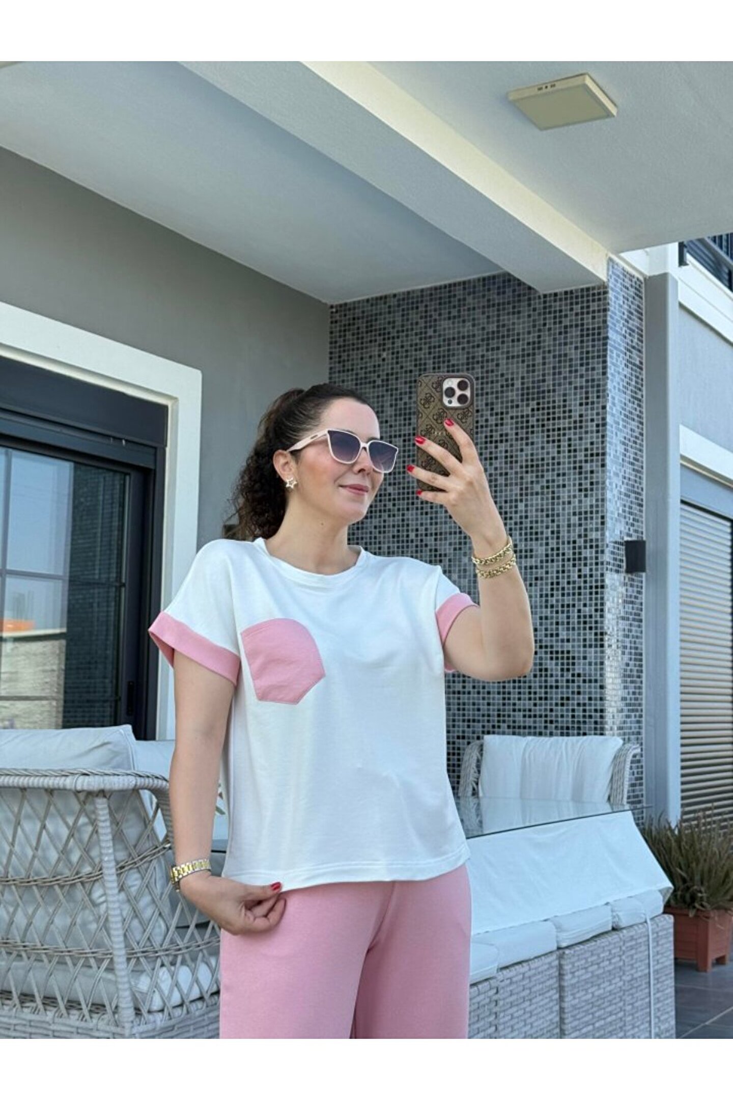 Modayakamoz Kadın Kristal Kumaş Garnili Cep Detaylı Ikili Takım