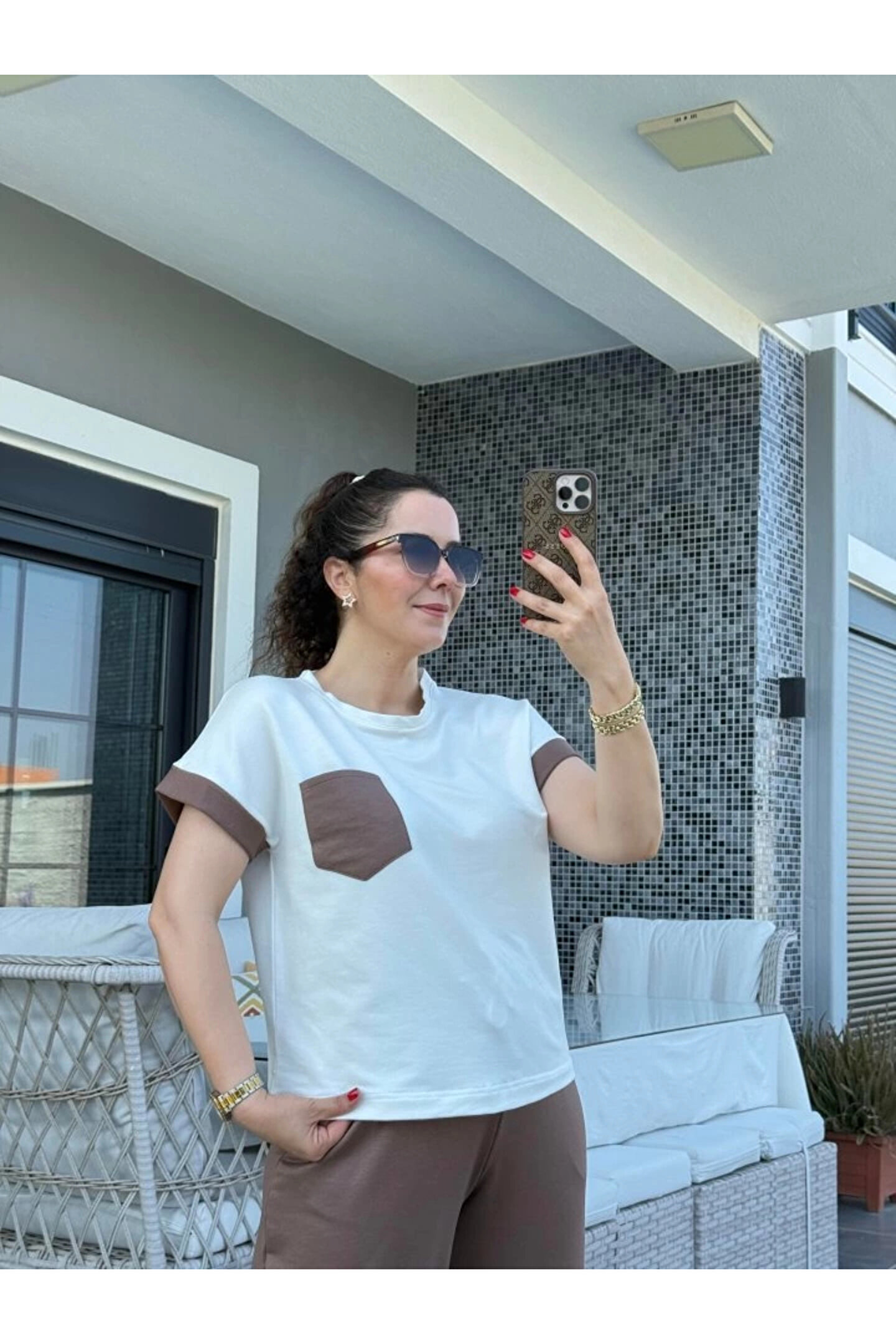 Modayakamoz Kadın Kristal Kumaş Garnili Cep Detaylı Ikili Takım