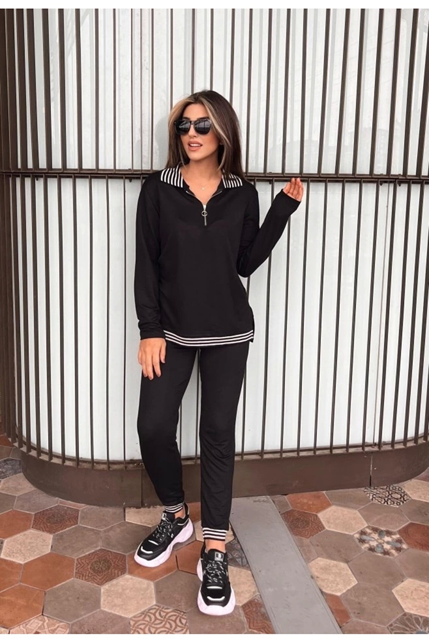 Modayakamoz Kadın Uzun Kollu Ribana Ve Fermuar Detay Bluz Ve Yüksel Bel Pantolon 2li Takım