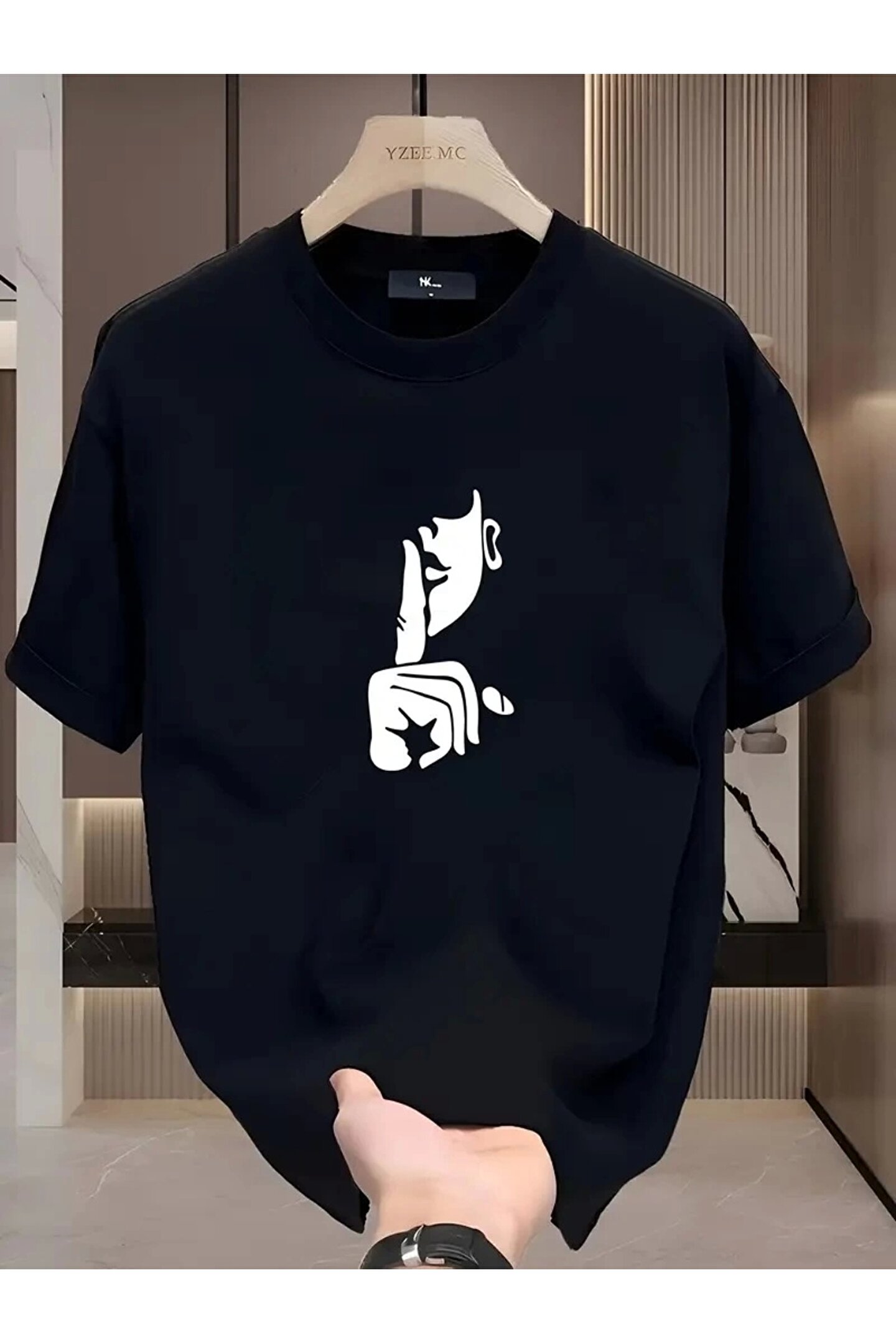 Rahat Bisiklet Yaka Tişört, Yaratıcı Karikatür Baskı - Yumuşak Polyester, Her Mevsim Giyilebilir- Si