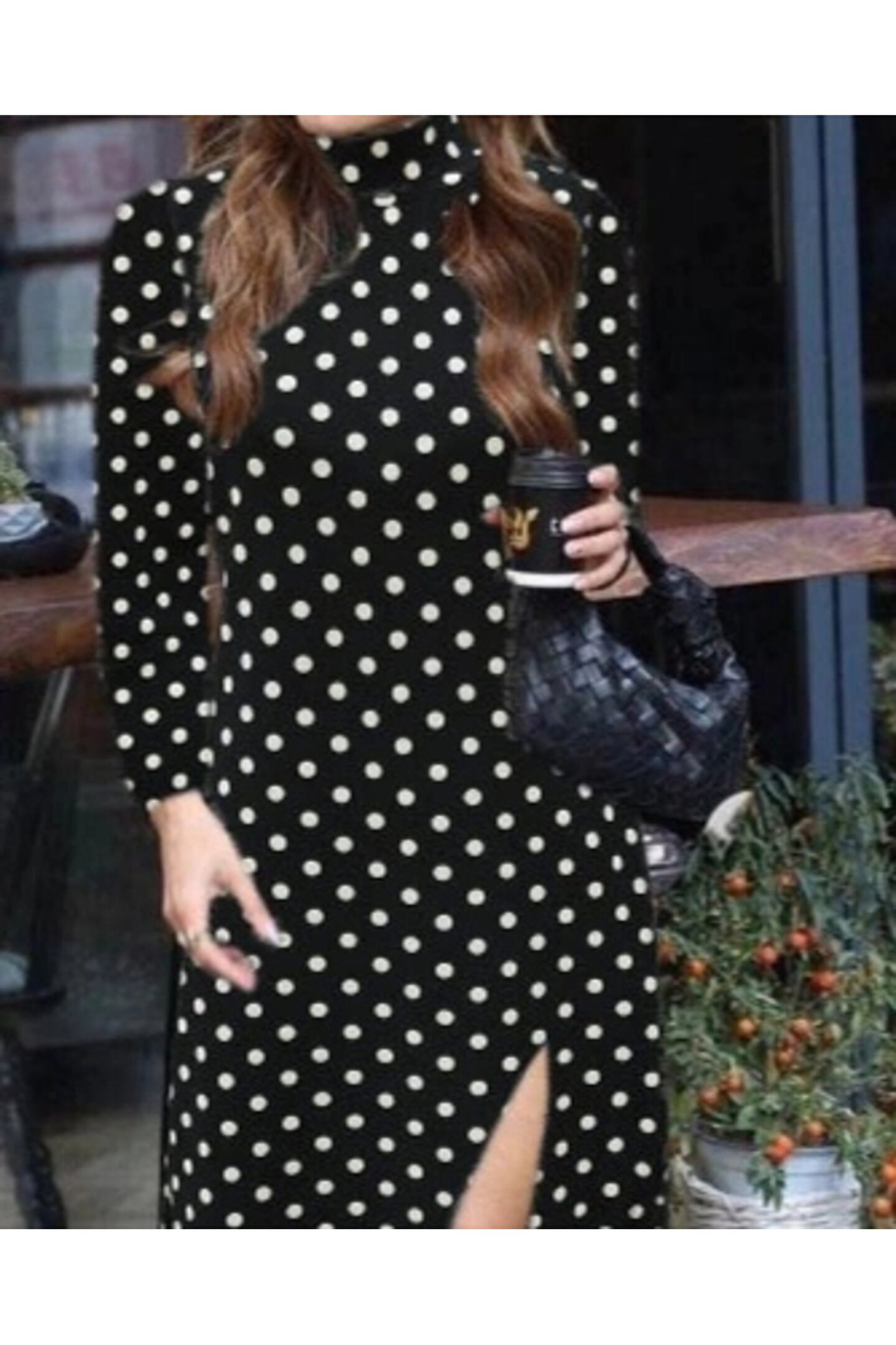 Kadın Uzun Kollu Balıkçı Yaka Yırtmaçlı Krep Elbise
