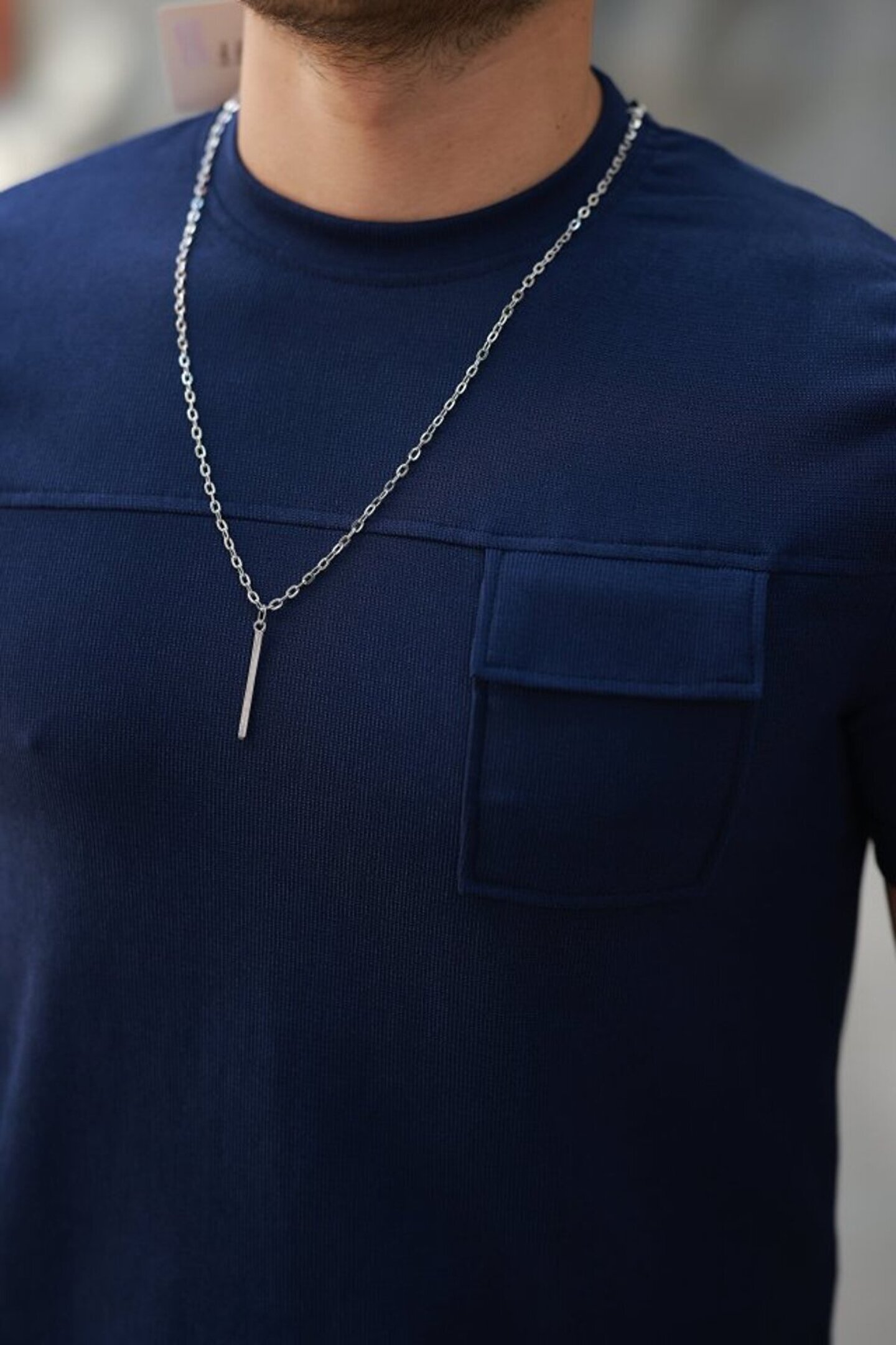 Erkek Cepli Kolyeli Kısa Kollu örme Kumaş Tişört