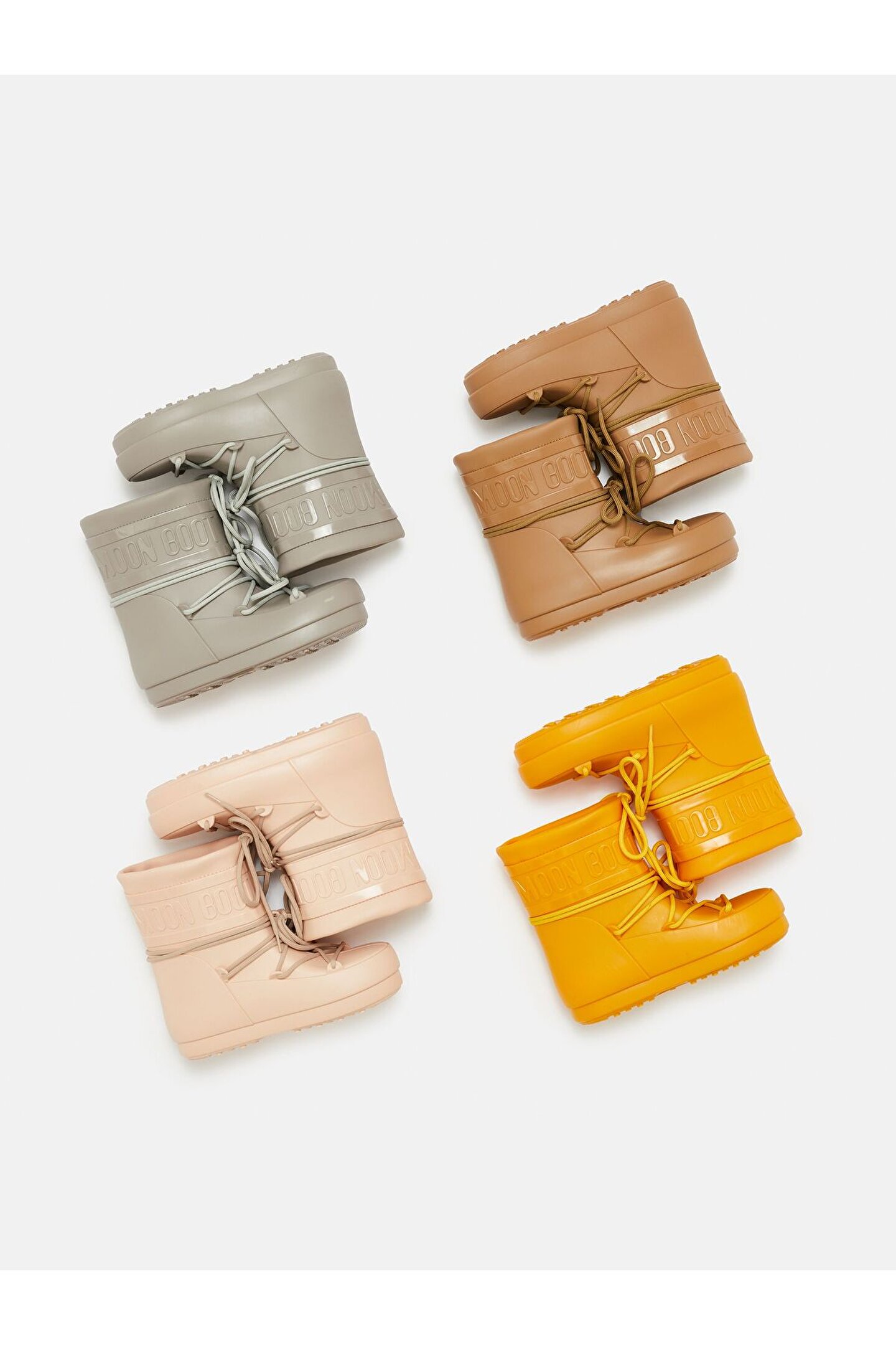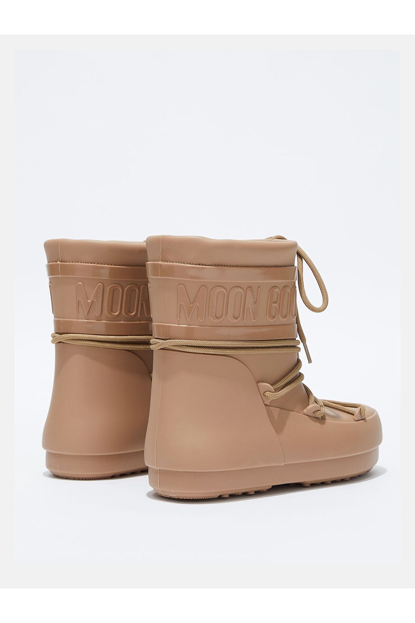 Rain, snow, stardust... this Moon Boot will take on a whole host of elements, no matter which land you choose to tread. It's engineered in flexible Evogum to a low-top silhouette and replicates the 1969 original with its decorative criss-cross laces and logo-embossed panel. Time to explore a new universe. Low Brown Rubber Rain Boots ; 100% water-repellent ; Embossed logo ; Rubber eyelets ; Aesthetic criss-cross tubular laces (not to be used to tighten boots) ; Drawstring at top ; Rubber tread sole ; Slip-on design ; Style ID: 24600200003 ; SIZE & FIT Made for a roomy fit. The lining moulds to the shape of any foot, adapting to offer a comfortable fit for a range of two sizes. For example, if you have a narrow size 37 we would recommend going down a size and taking 35-36. However if you have a large 38, we would still recommend taking the 37-38 due to the roomy fit. MATERIAL AND CARE 100% thermoplastic rubber; lining: 100% polyester; outsole: 100% thermoplastic rubber ; STEP 1: Use a soft, dry brush to remove dirt ; STEP 2: Use a soft, damp cloth, mild detergent and water to remove marks ; STEP 3: Use a soft brush, mild detergent and water to brush the mid sole and outsole ; STEP 4: Allow to dry at room temperature ;
