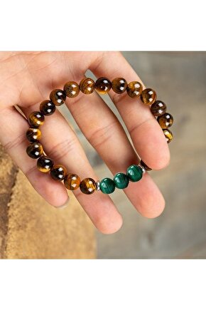 Doğal malahit taşı kullanılarak üretilmiş, şıklığı ve doğallığı bir arada sunan bileklik; El yapımı ve özgün tasarımıyla her kıyafetle uyum sağlayacak zarif bir aksesuar; Malahit taşı, benzersiz renk tonları ve desenleriyle göz alıcı bir görünüm kazandırır; Bileklik, hem günlük kullanım hem de özel günler için ideal bir aksesuar seçeneği sunar;