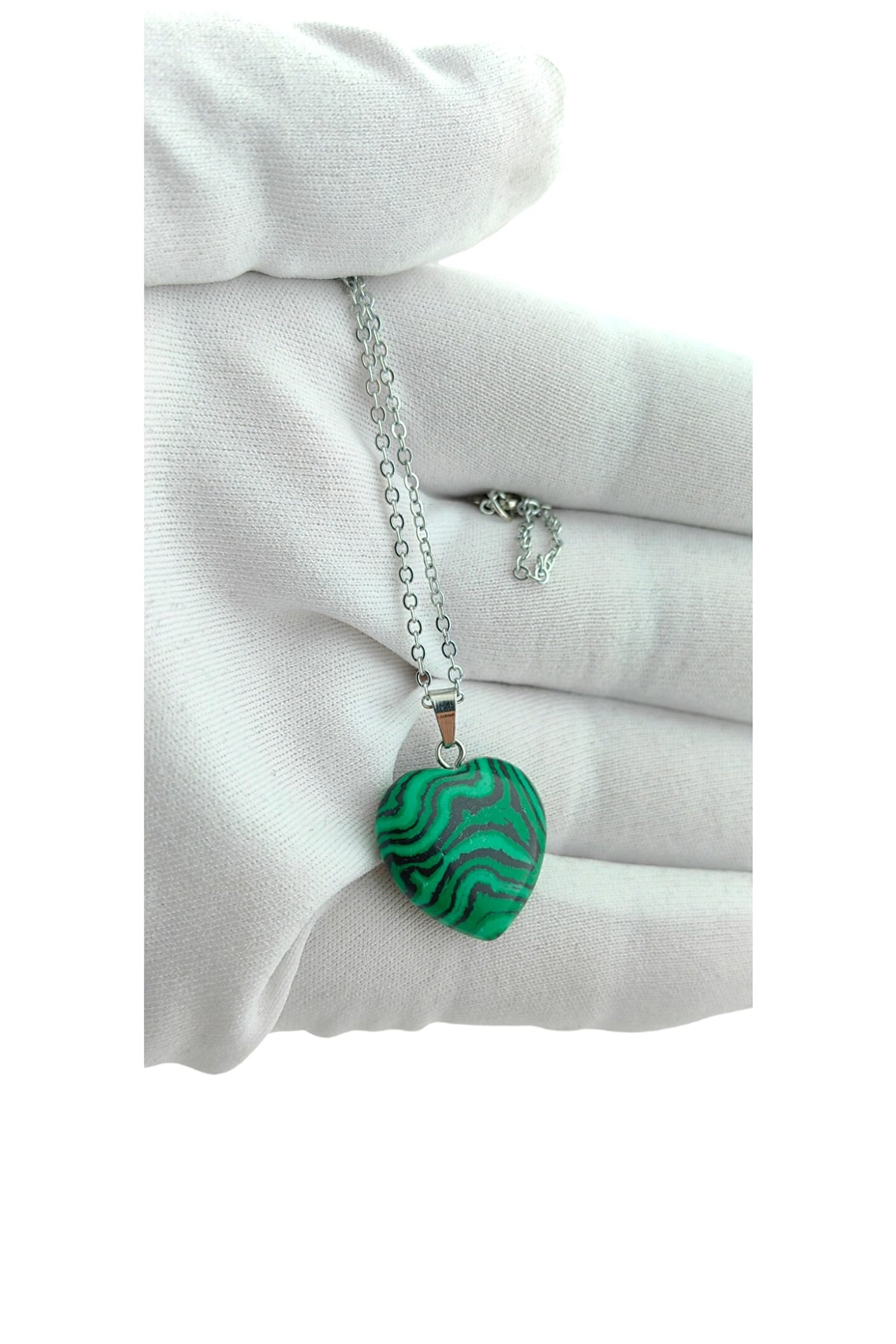 Doğal Malahit taşı kullanılarak üretilmiş, her bir kolye benzersiz ve otantik bir görünüm sunar; Malahit taşı, zengin renk tonları ve parlaklığı ile dikkat çeker, bu da kolyenin şıklığını artırır; Taşın doğal yapısı sayesinde her kullanımda farklı bir parlaklık ve renk tonu sergiler, bu da kolyenin estetik değerini yükseltir; Malahit taşı, hem günlük kullanım hem de özel günler için ideal bir aksesuar seçeneği olarak öne çıkar; zarifliği ve doğallığıyla göz alıcı bir stil oluşturur;