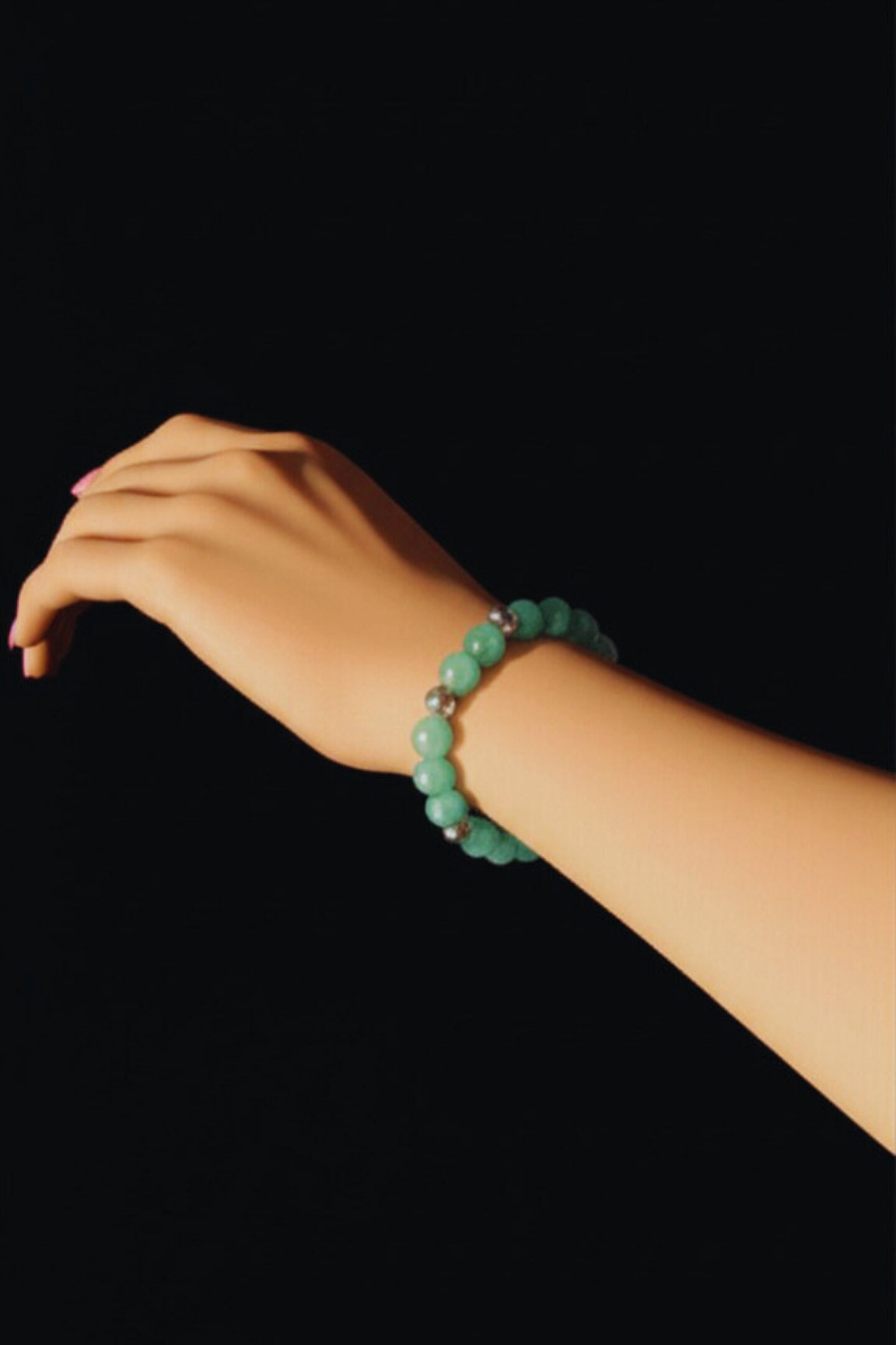 - Unisex tasarımı ile herkesin kullanımına uygun, genç yaş grubuna hitap eden bir aksesuar.; - Menşei Türkiye olan doğal Amazonit taşı, özgün ve kaliteli bir deneyim sunar.; - 8 mm çapındaki bu doğal taş bileklik, hem şık hem de anlamlı bir hediye seçeneği olarak öne çıkar.; - Orijinal doğal Amazonit taşı materyali, her bileklik parçasının benzersiz ve otantik olmasını sağlar.; - Nemli bir bezle kolayca temizlenebilen yapısı sayesinde bakımının pratik olması kullanıcı memnuniyetini artırır.; - Mavi rengiyle dikkat çeken bu bileklik, pozitif enerji ve öz güven kristali olarak bilinir.