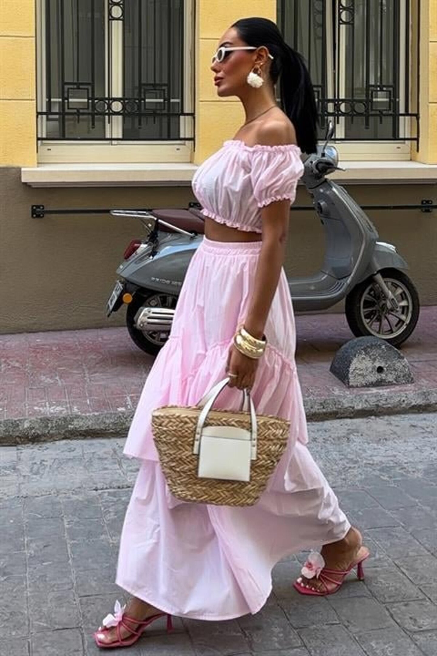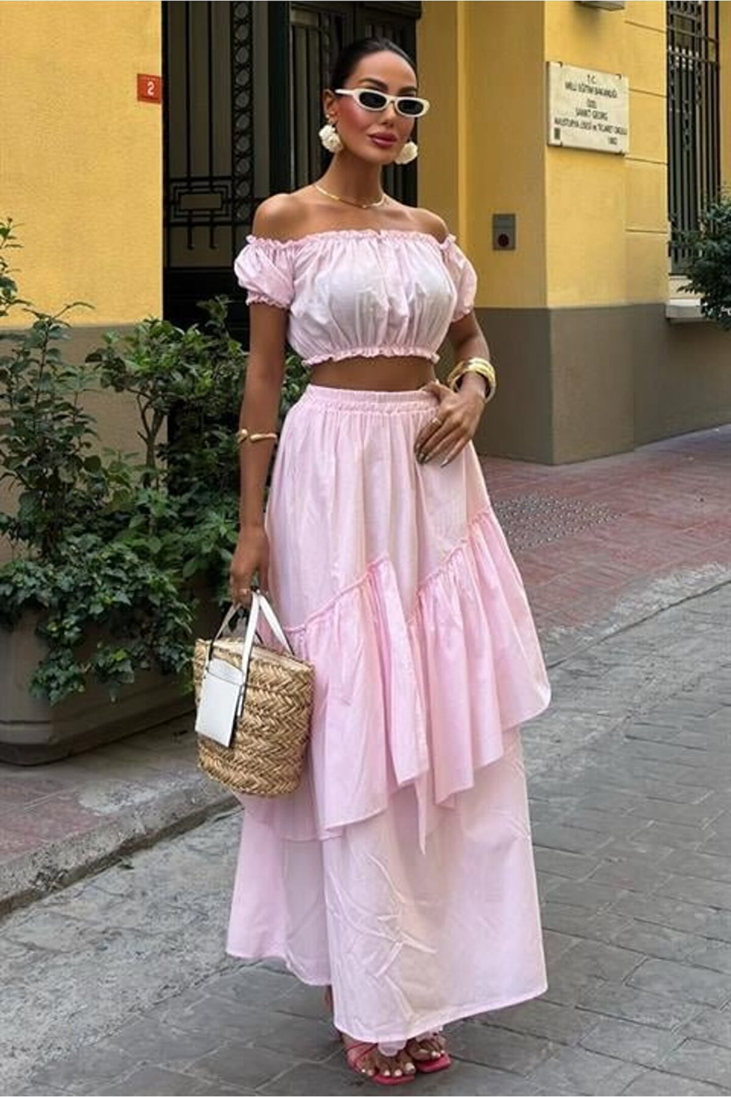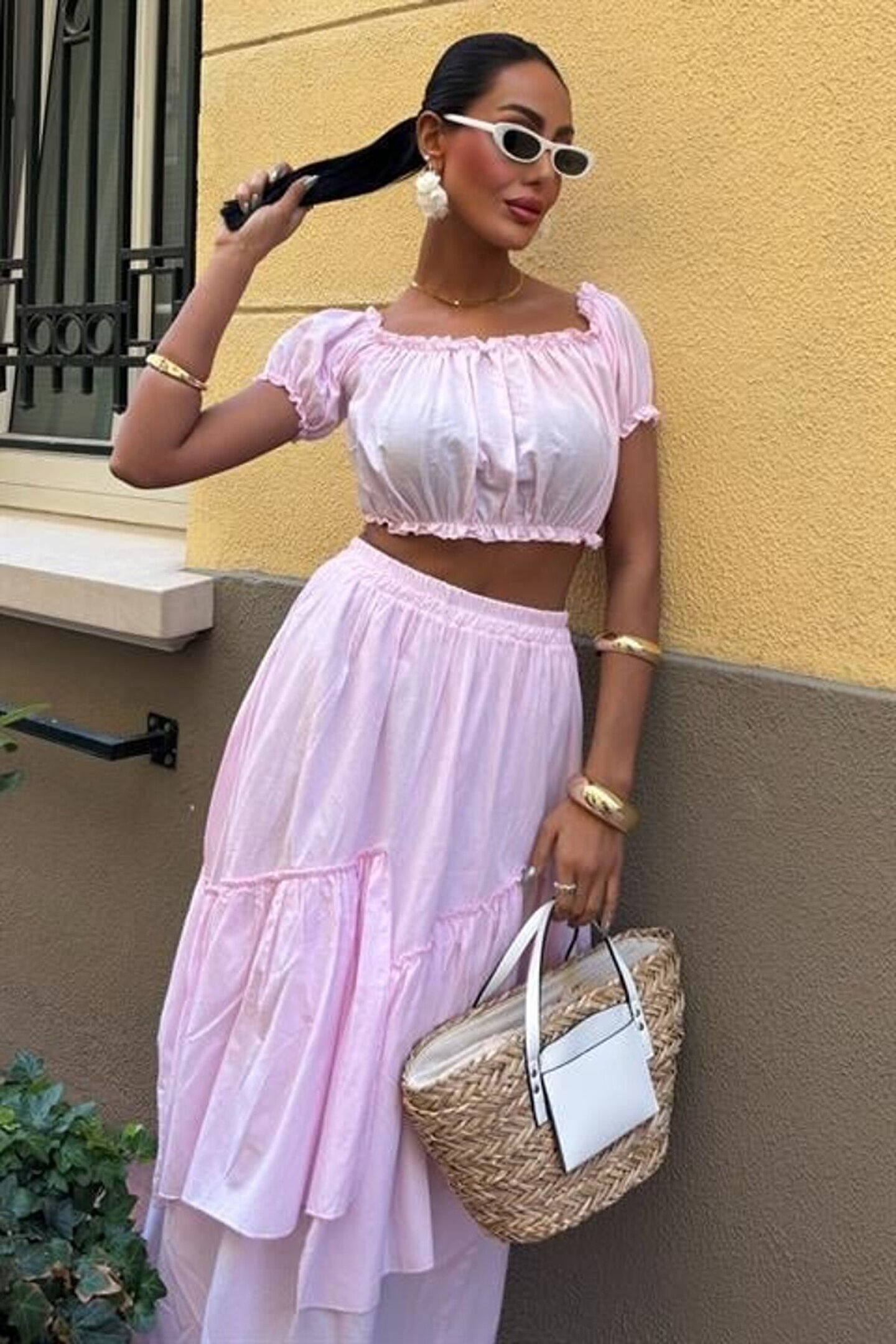 mrpurple Büzgülü Crop Kat Detaylı Fırfır Etekli Takım 10196
