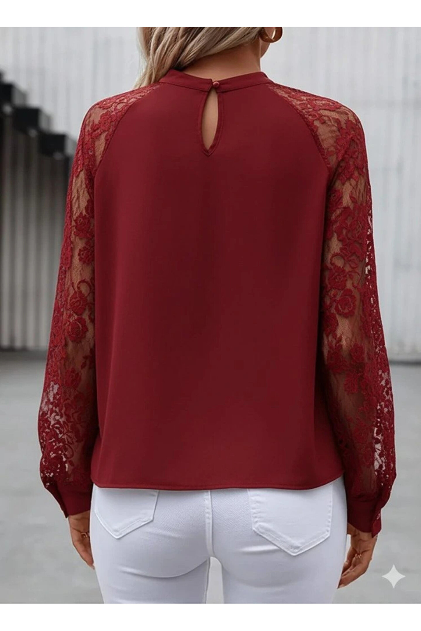 mrpurple Kadın Uzun Dantel Kollu Yuvarlak Yakalı Sandy Bluz