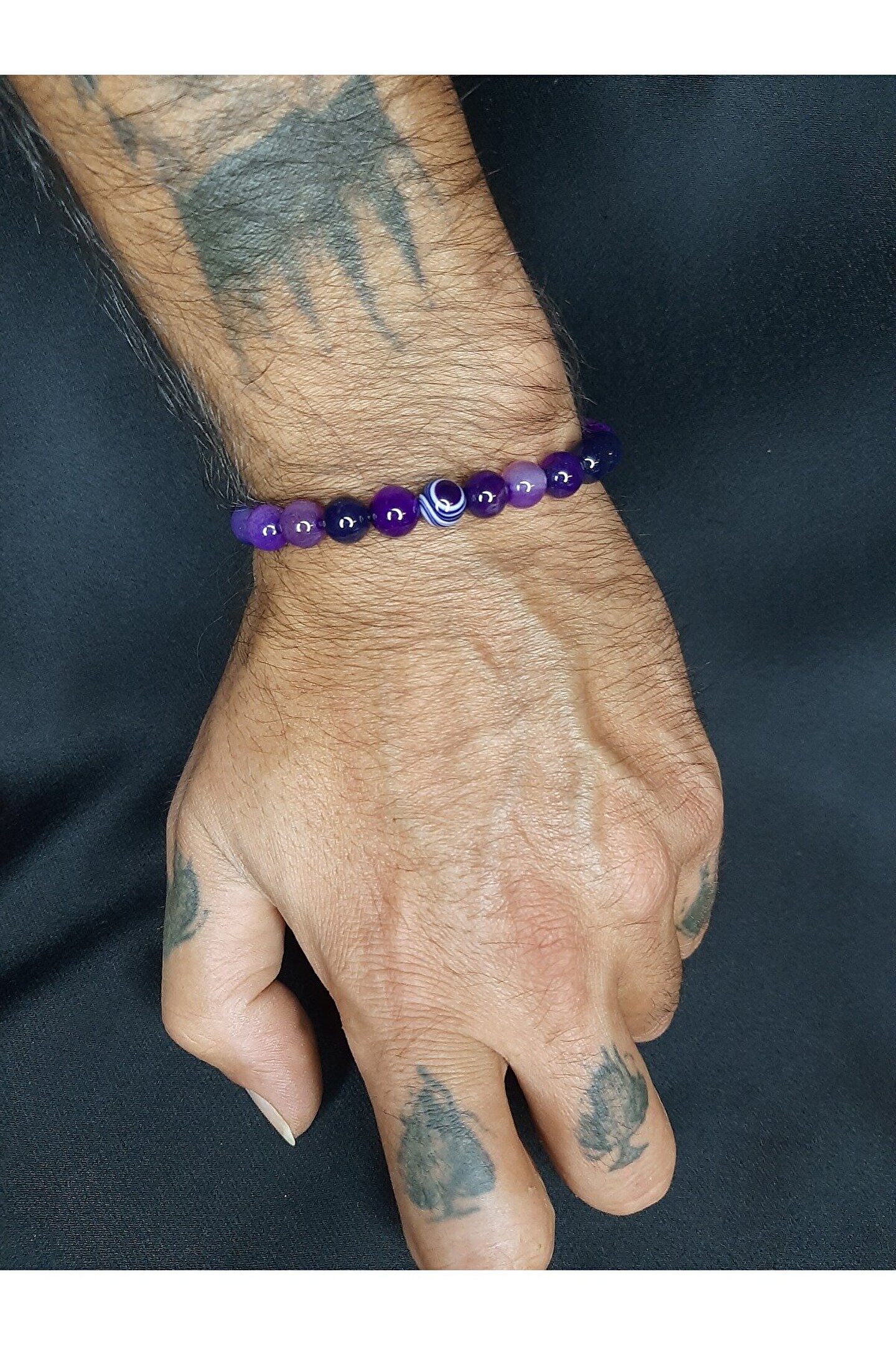 MRYart Mor Renk Doğal Akik Taşı Bileklik