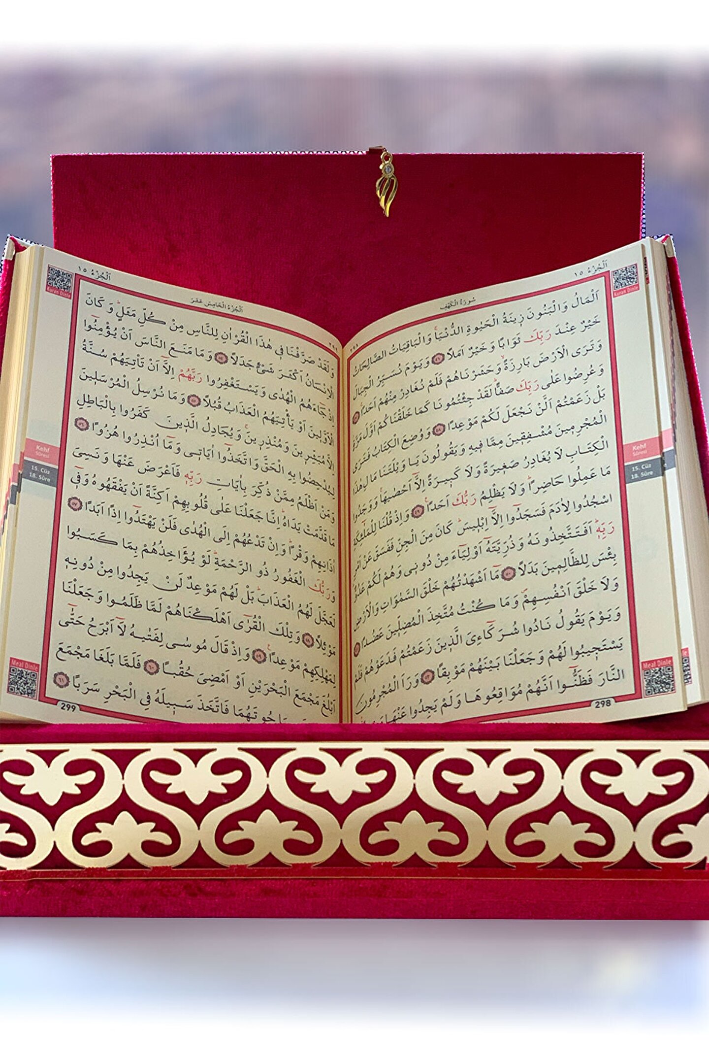 Bu özel Kuranı Kerim, kaliteli sünger kadife malzemesiyle kaplanmış ve estetik bir görünüme sahip; Sünger kadife malzemesi, dokusu sayesinde yüksek bir hissiyat sağlar ve kitabın daha özel hissedilmesini sağlar; Bu özellikleriyle, Kuranı Kerim, manevi dünyanızda özel bir yere sahip olacak; Kitap, pleksi süslemeli kutu tasarımı ile sunulmaktadır; Kutu, zarif tasarımı ve kaliteli malzeme kullanımı ile dikkat çekiyor; Kutunun üst kapağı, pleksi malzeme ile kaplanmıştır ve içerideki Kuranı Kerim'i korur; Aynı zamanda, kutunun şık ve modern tasarımı, dekorasyonunuzu da tamamlayabilir; Bu Kuranı Kerim, özenle hazırlanmış bir kitaptır; Sayfaları, mükemmel bir hat sanatı ile yazılmış ve manevi değeri çok yüksek olan ayetler içermektedir; Kitap, hem evde hem de camide kullanılabilir ve manevi dünyanızı zenginleştirmek için size rehberlik edebilir; Ürün, hediyelik olarak da düşünülebilir; Özel günlerde, doğum günleri, evlilikler, mezuniyet törenleri ve daha birçok farklı kutlamalarda sevdiklerinize verilebilecek anlamlı bir hediye seçeneği olabilir; Kuranı Kerim'in yanı sıra kutunun tasarımı da özel bir anlam taşır ve hediye alan kişiye özel hissettirecektir; Sonuç olarak, bu özel Kuranı Kerim, kaliteli malzemeler kullanılarak üretilmiştir ve estetik bir görünüme sahip; Pleksi süslemeli kutusu ile birlikte sunulması, ürüne ekstra bir değer katıyor; Bu set, manevi açıdan önemli bir araç olan Kuranı Kerim'i koruyacak ve özel hissettirecek; Ayrıca, hediyelik olarak da düşünülebilecek olan bu ürün, özel günlerde sevdiklerinize verilebilecek anlamlı bir hediye seçeneği olarak da öne çıkıyor;