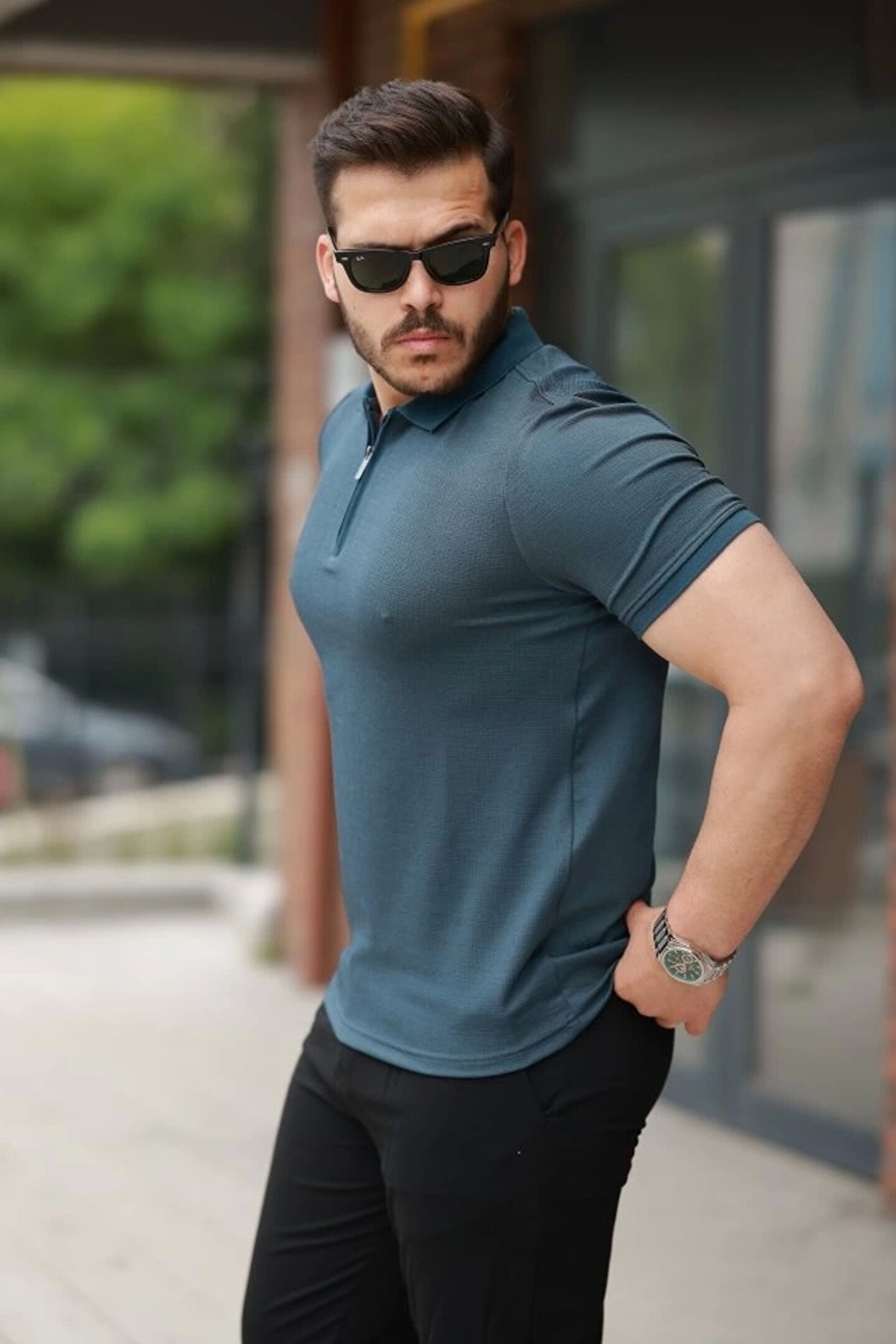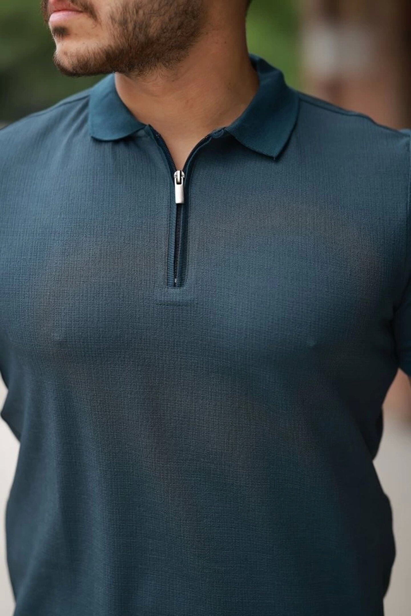Erkek Fermuarlı Yaka Kısa Kollu Tişört