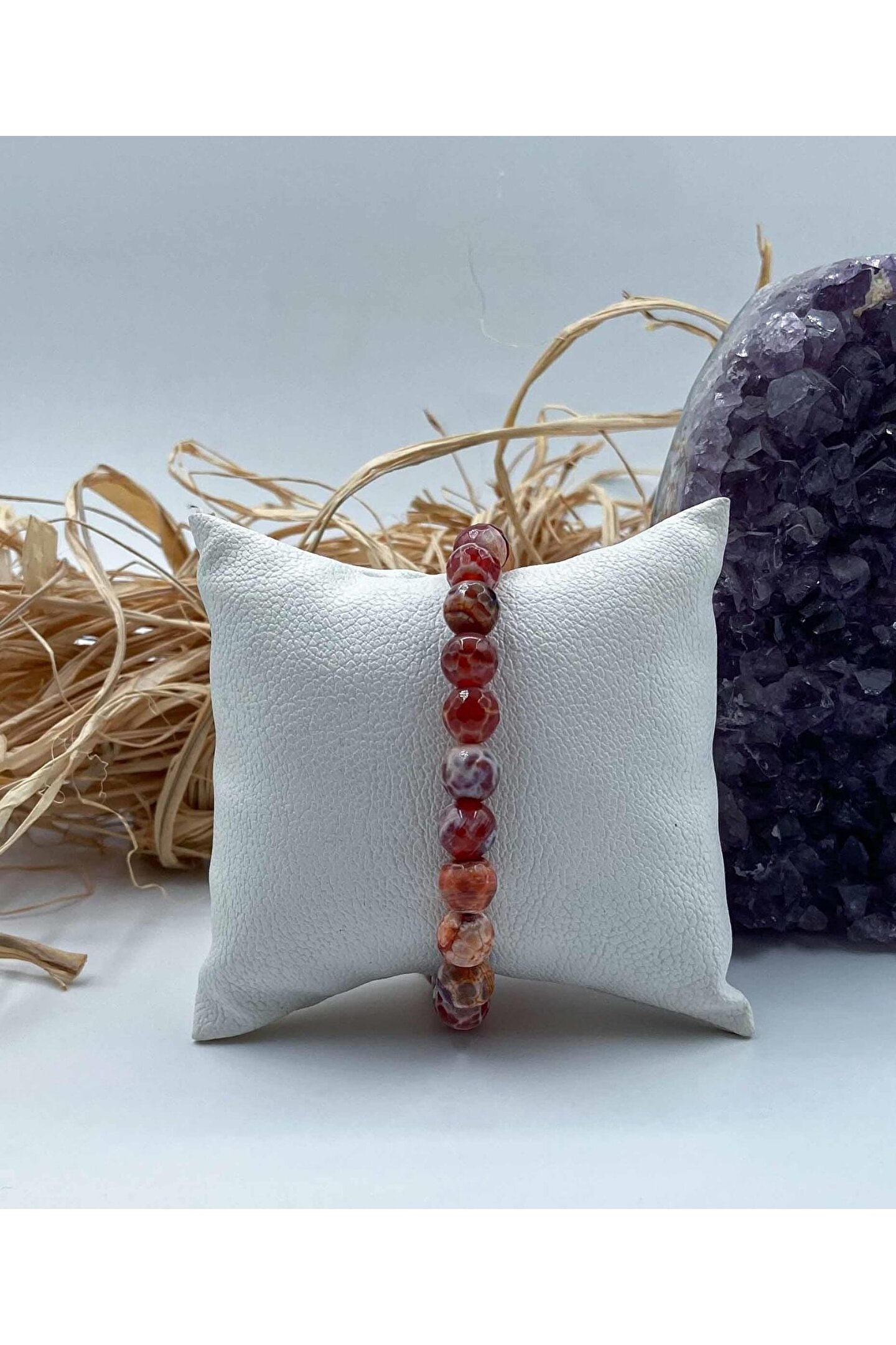 Mucize Taş Akik Doğal Taş Bileklik 8 Mm Küre Faset Kesim