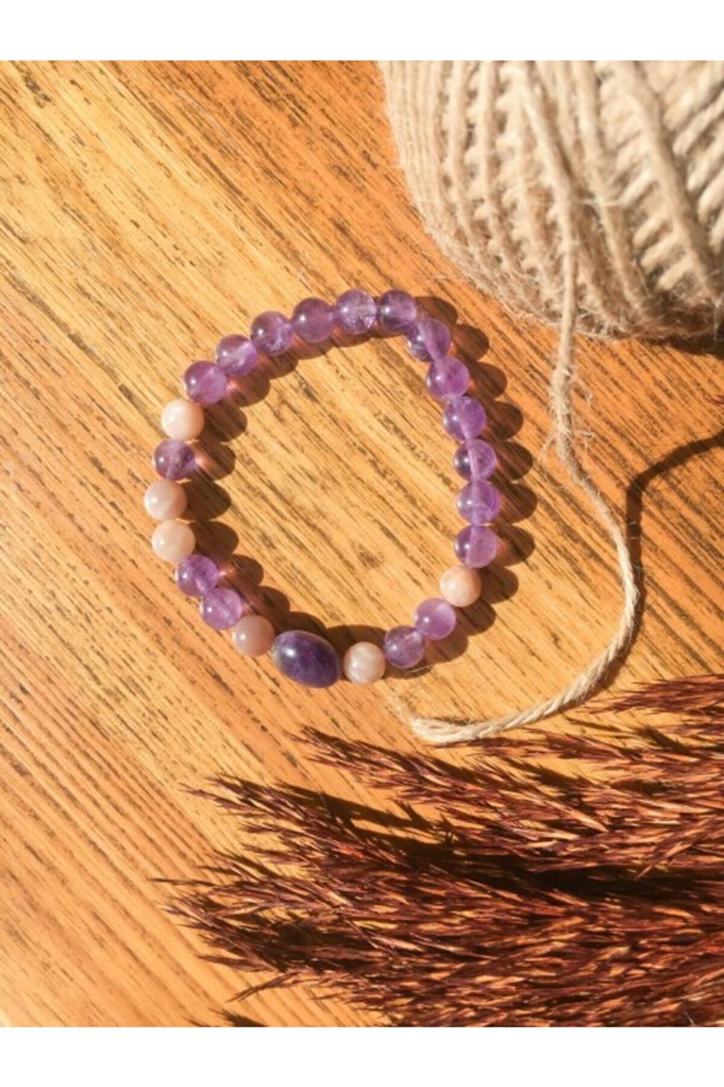 - Doğal taş kullanımı sayesinde her bileklik benzersiz ve otantik bir görünüm sunar; - Ametrin taşı, bilekliğe zarif bir parlaklık ve sofistike bir dokunuş katar; - Güneş taşı, bilekliğe enerji ve pozitiflik getirmekle bilinir, bu da günlük kullanım için ideal bir aksesuar yapar; - Taşın doğal yapısı, bilekliğin hem şık hem de dayanıklı olmasını sağlar;