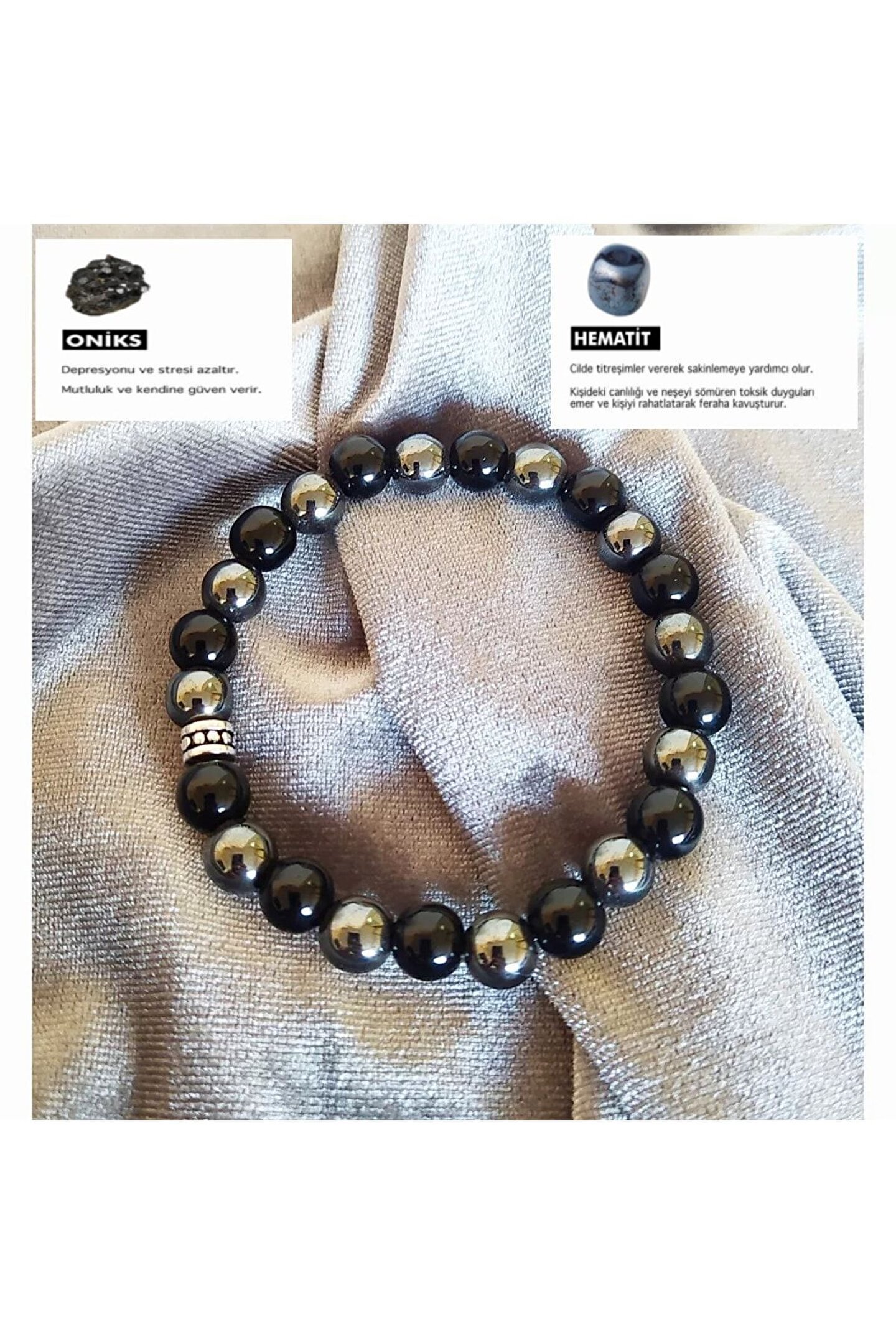 Doğal taş kullanımı sayesinde her bileklik benzersiz ve otantik bir görünüm sunar; Hem hematit hem de oniks taşı, bilekliğe zarif bir denge ve güç katar; Unisex tasarımı ile hem kadınlar hem de erkekler için uygun, şık bir aksesuar seçeneği oluşturur; Doğal taşların eşsiz dokusu ve renkleri, her kıyafetle kolayca uyum sağlar ve stilinizi tamamlar;
