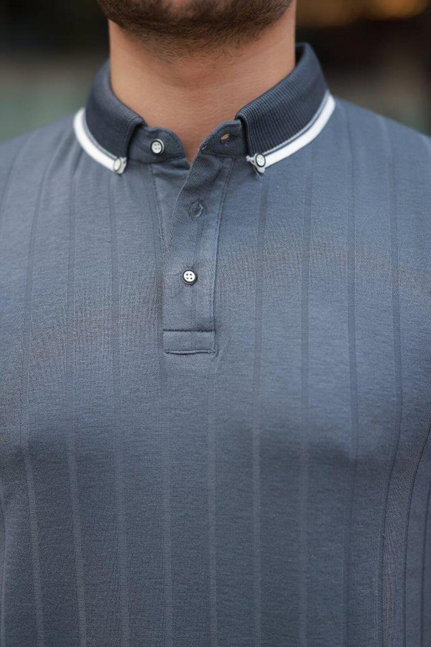 Erkek Düğme Yakalı Jakar Kumaş Kısa Kollu Tişört