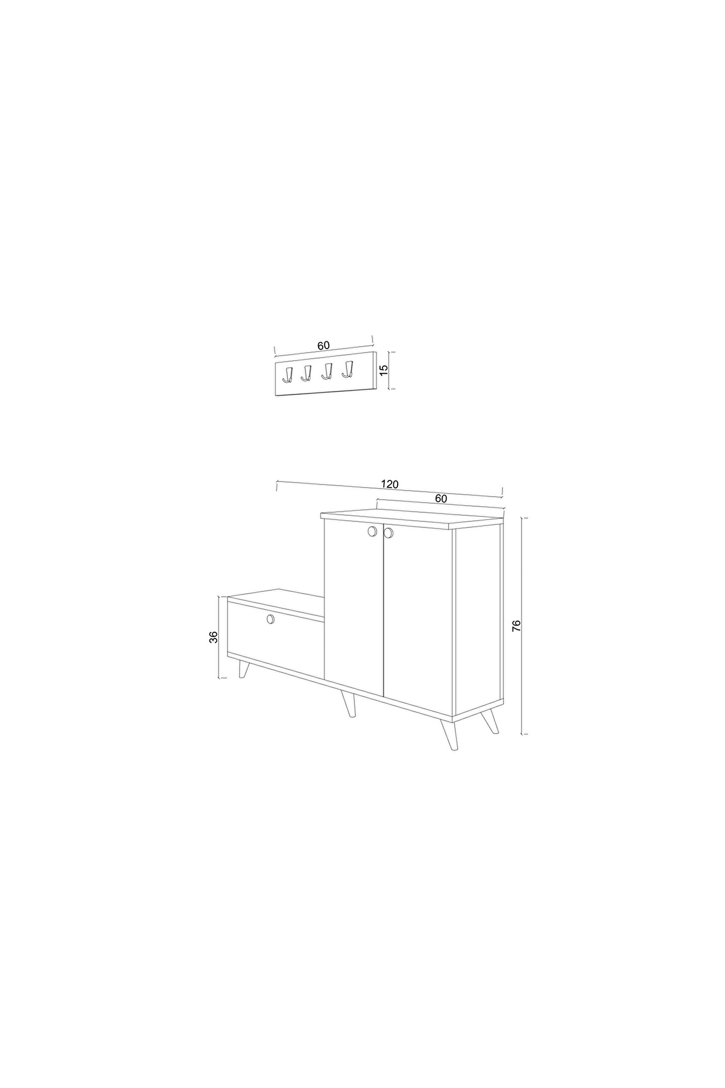 Ayakkabılıkta suntalam malzeme kullanılmıştır. İki adet bölme bulunan ayakkabı dolabı, sağ ve sol bölmesi kapaklı olarak tasarlanır.