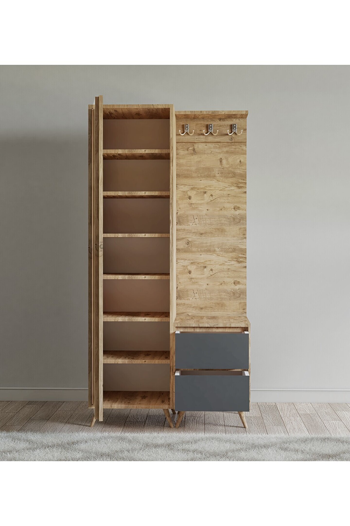 Portmanto ürün ölçüleri g 95 cm d35 cm y190 cm malzemeler gövde: Atlantikçam suntalam kapak ve çekmece önü beyaz suntalam renk ürün özellikleri kullanılan tüm malzemeler tse onaylı, e1 kalitesinde olup kanserojen madde içermez ve anti bakteriyeldir. Montajı kolaylaştıracak biçimde kurulum talimatı yer almaktadır. Ürün yüzeyinde bulunan ahşap doku, doğal ağacı aratmayacakgörünümdedir. Antre ve hollerde derleyici bir öge olarak kullanılmaya uygundur. Montaj ürünlerimiz özel kargo paketinde demonte olarak teslim edilir. Paketlerde gerekli kurulum şeması, tüm vida ve aksesuarlarınmontaj seması ile uyumlu malzeme torbası ve kullanma kılavuzu çıkmaktadır. Kurulum müşteriye aittir. Hızlı ve hatasız kurulum için montaj şeması bulunmaktadır. Ürün kurulumunda profesyonel yardım alınmalıdır. Montaj için gereklialetler *şarjlı tornavida *çekiç değişim ve iadekoşulları ürünü kargodan teslim alınırken paketler mutlaka kontroledilmeli, hasarlı paket veya ürünler teslim alınmamalı ve kargo yetkilisine hasar tespit tutanağı hazırlanması doğrultusunda yardım talep etmenizgerekmektedir. Çevreye ve sağlığa zararsız kanserojen madde içermeyen e1kalite standardında malzeme kullanılmıştır. Aksesuarlar * montaj: Ürün kurulu olmadan (demonte olarak) kutulu haldeteslim edilmektedir. * kutu içinde tüm kurulum için gerekli olan malzemeçıkmaktadır (bazı ürünlerin kurulumu için ek olarak tornavida, çekiçgerekebilir)