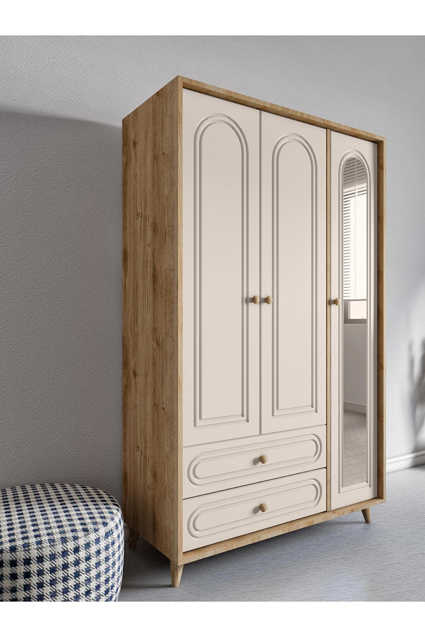 MYMOB SOFİA BOHEM AYNALI 3 KAPAKLI GARDROP