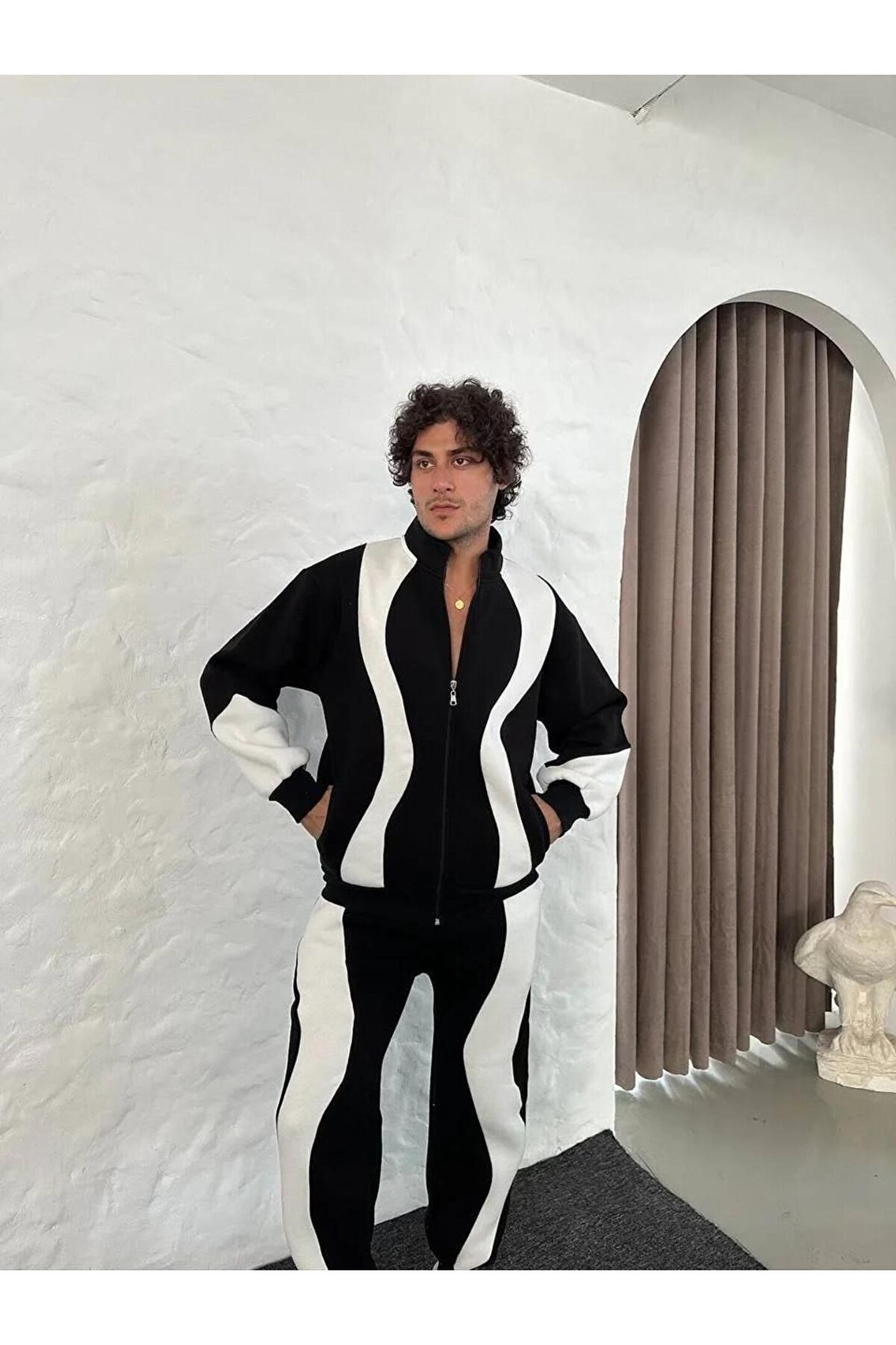 Erkek Premium Parçalı Eşofman Takım - Dik Yaka Fermuarlı Sweatshirt, - Siyah