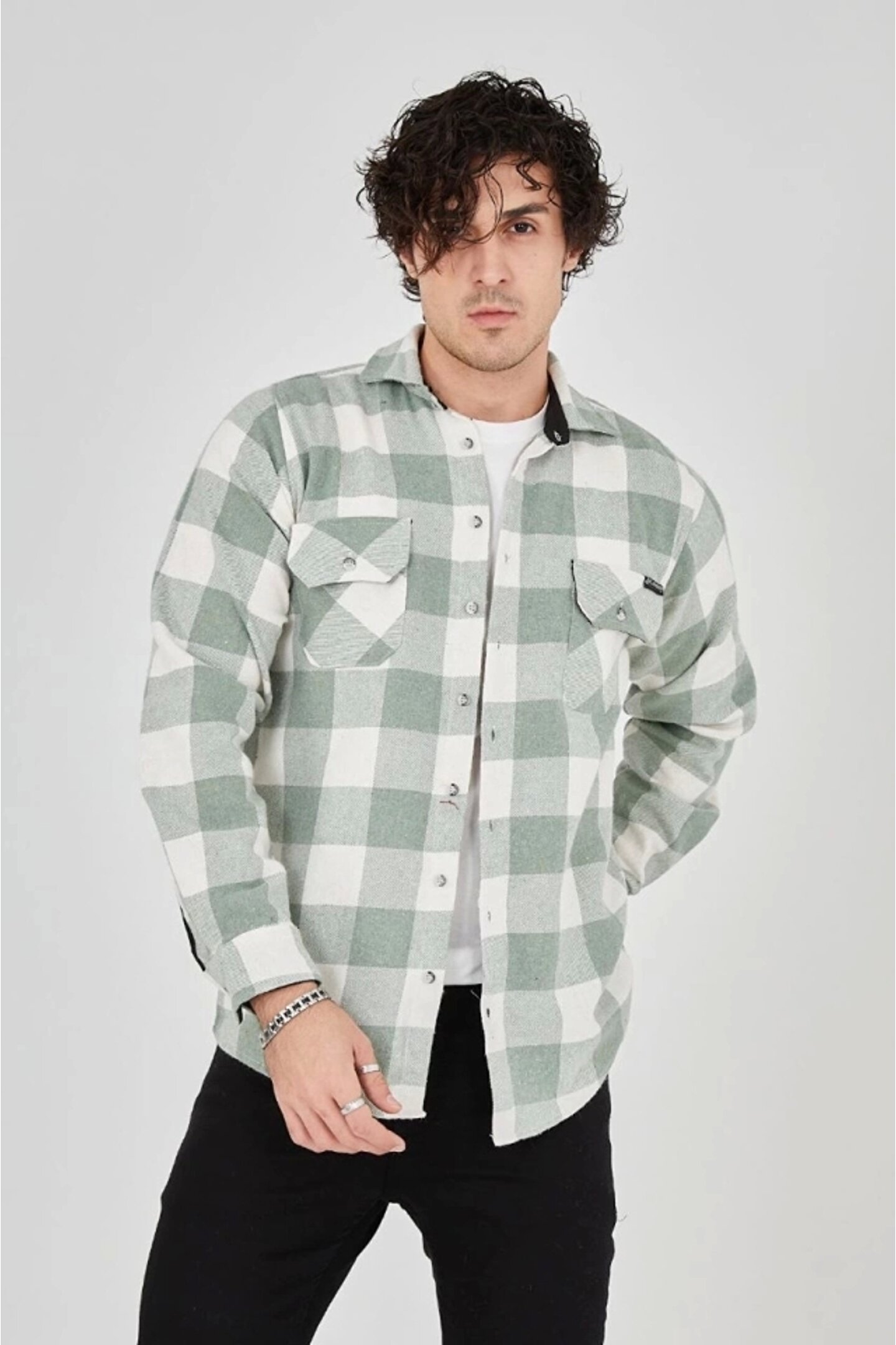 Erkek Uzun Kollu Oduncu Gömlek - Mint Yeşili