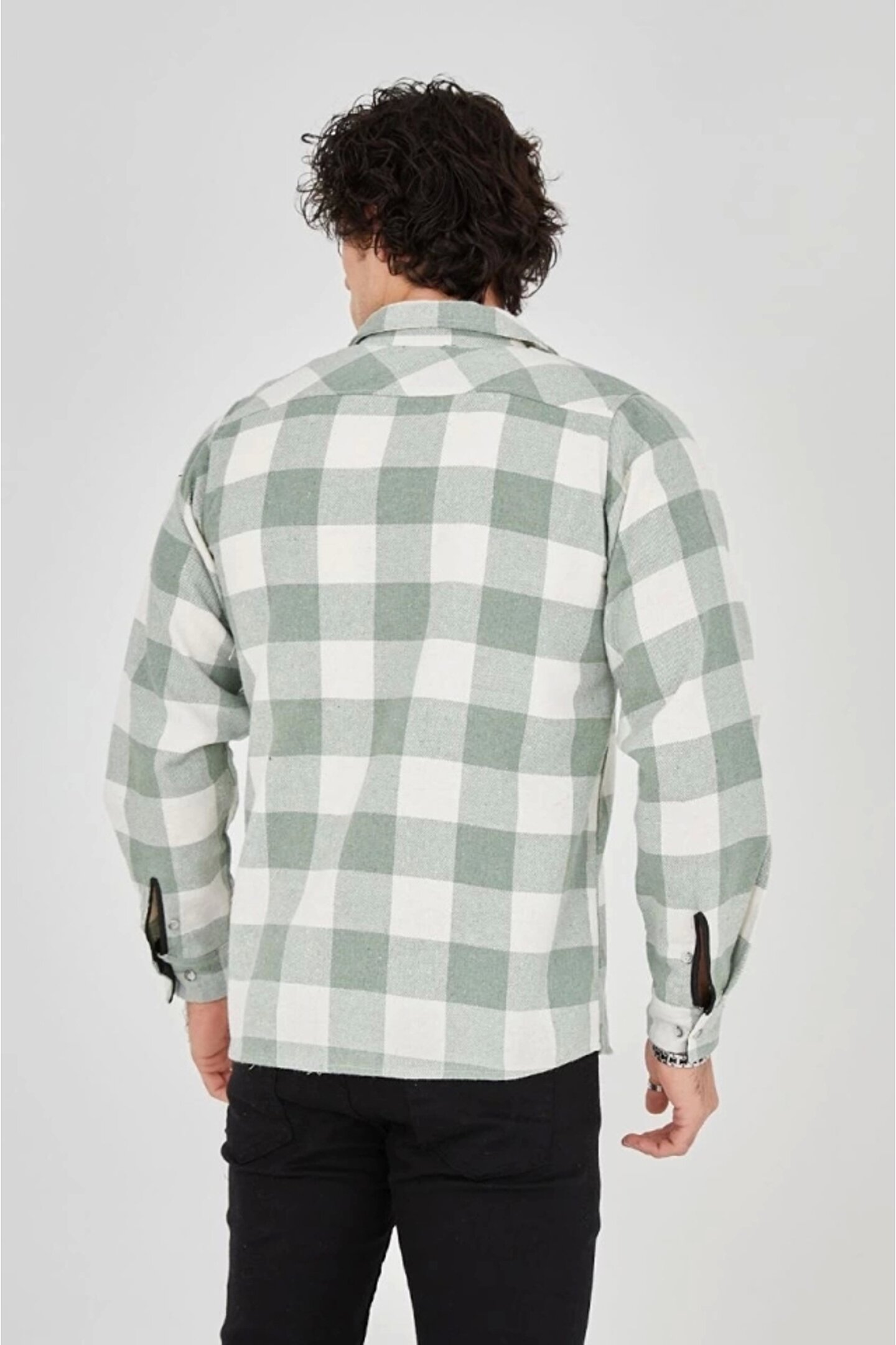 mzpkartan Erkek Uzun Kollu Oduncu Gömlek - Mint Yeşili