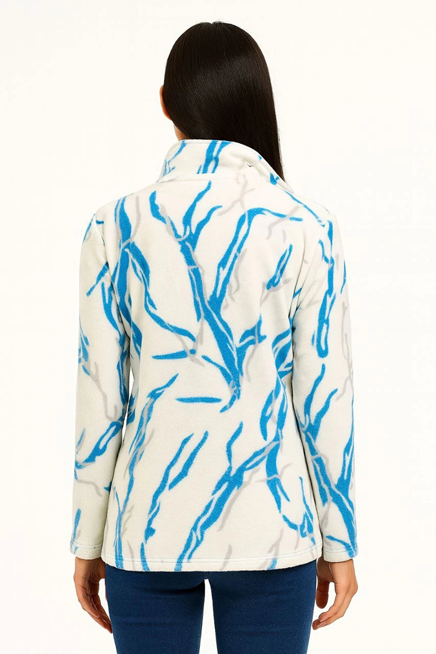 mzpkartan Kadın Tam Fermuarlı Desenli Polar Sweat Lightning Desen Yakalı, Uzun Kollu, Oversize Rahat Kalıp - B