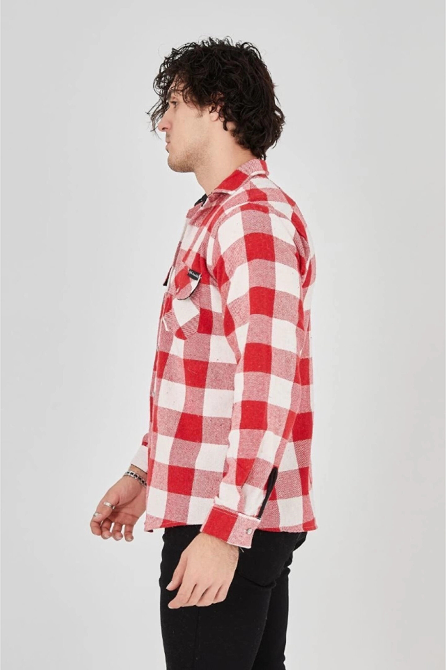 MODA Erkek Oduncu Gömlek – Uzun Kollu, Şardonlu Kumaş, Kareli Desen, Regular Fit, Manşetli, Çift Cepli, R