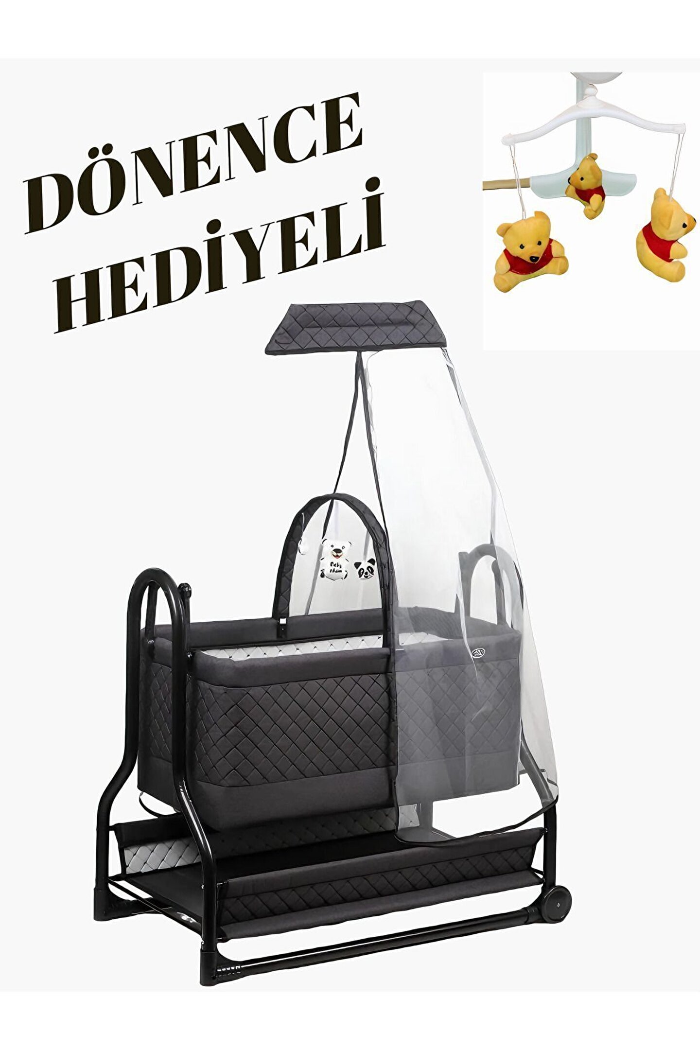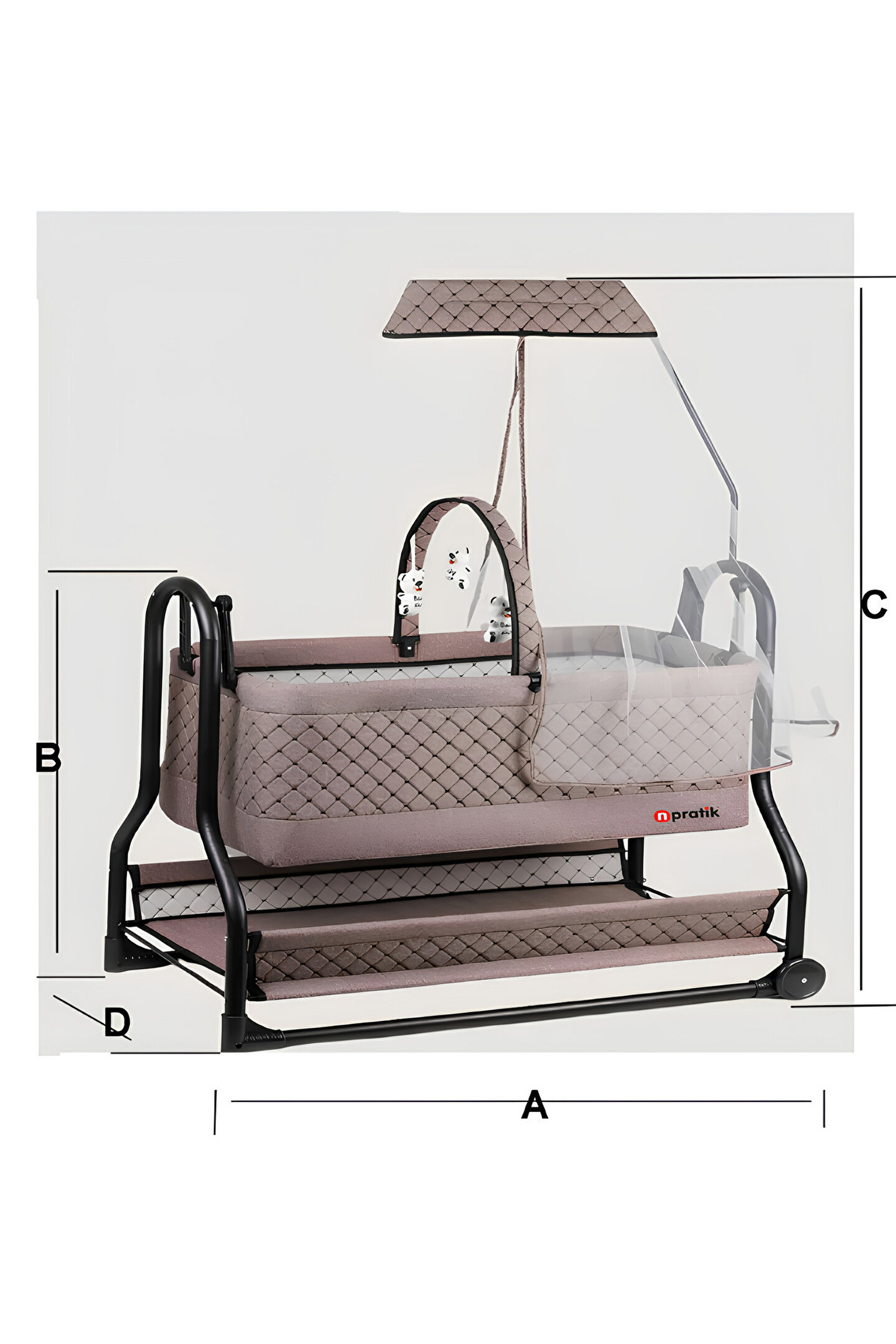 Bebeğinizin huzurlu uykuları için tasarlanmış, sallanabilir ve tekerlekli yapısıyla kolayca taşınabilir; Dayanıklı metal materyal kullanımı sayesinde uzun ömürlü ve sağlam bir yapı sunar; Sallanma fonksiyonu ile bebeğinizi rahatlatarak huzurlu uykular sağlar; Kolay temizlenebilir yüzeyi sayesinde hijyenik bir uyku ortamı oluşturur; 2 yıl garanti süresi ile güvenilir kullanım ve satın alma sonrası destek sunar;