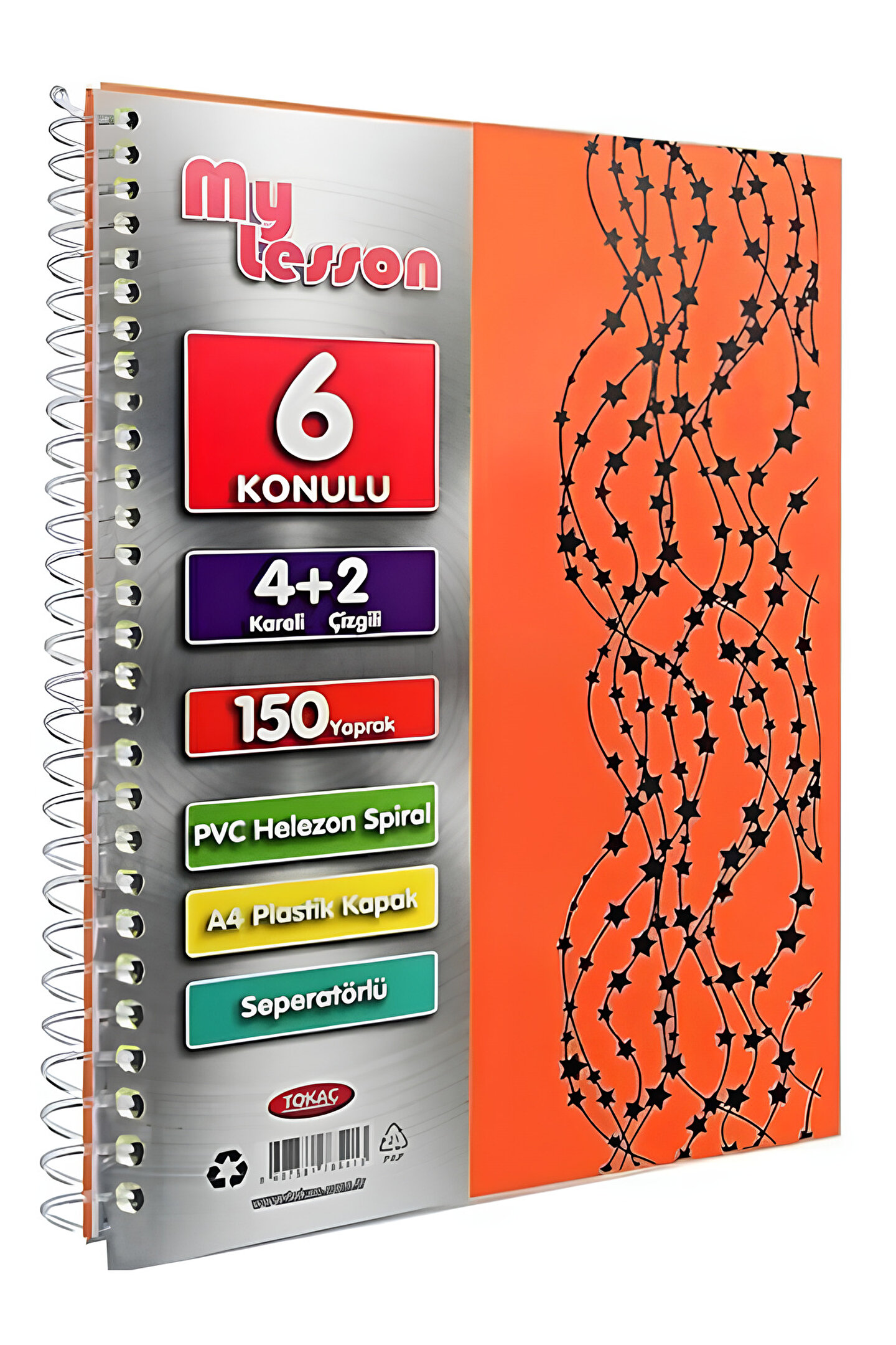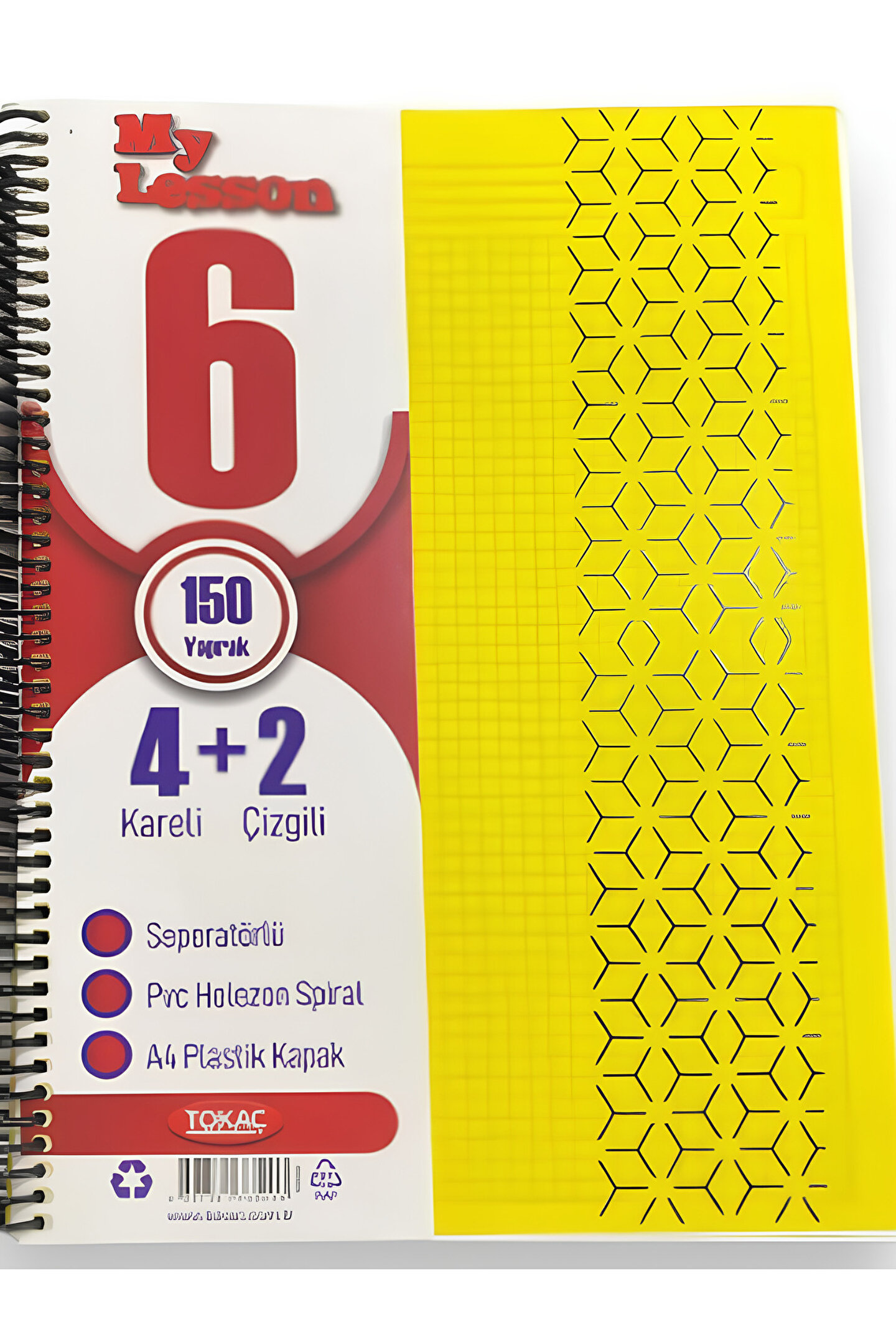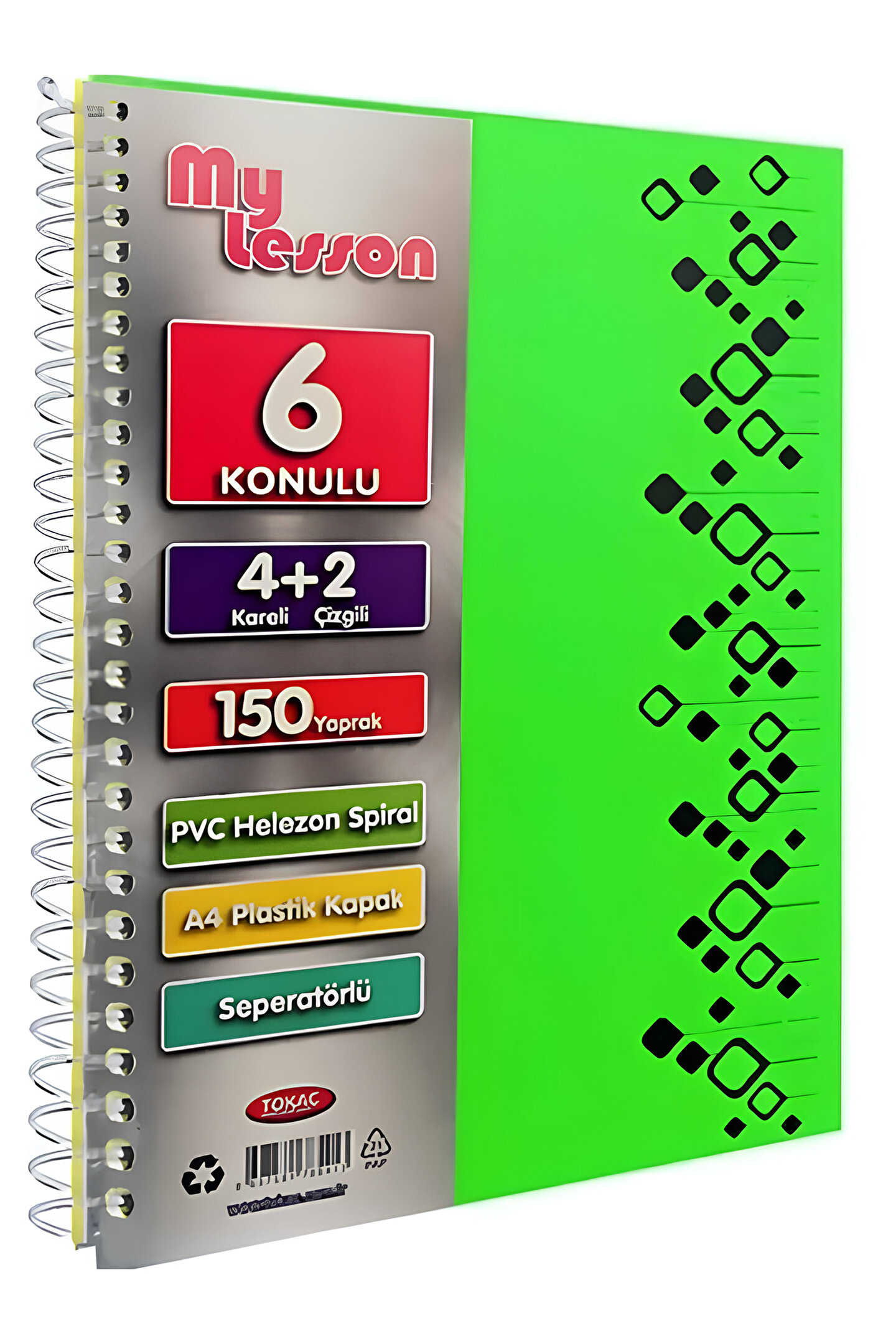 My Lesson Pp Kapak A4 4+2 150 Yaprak Spiralli 6 Bölmeli Ayraçlı Kareli Çizgili Defter