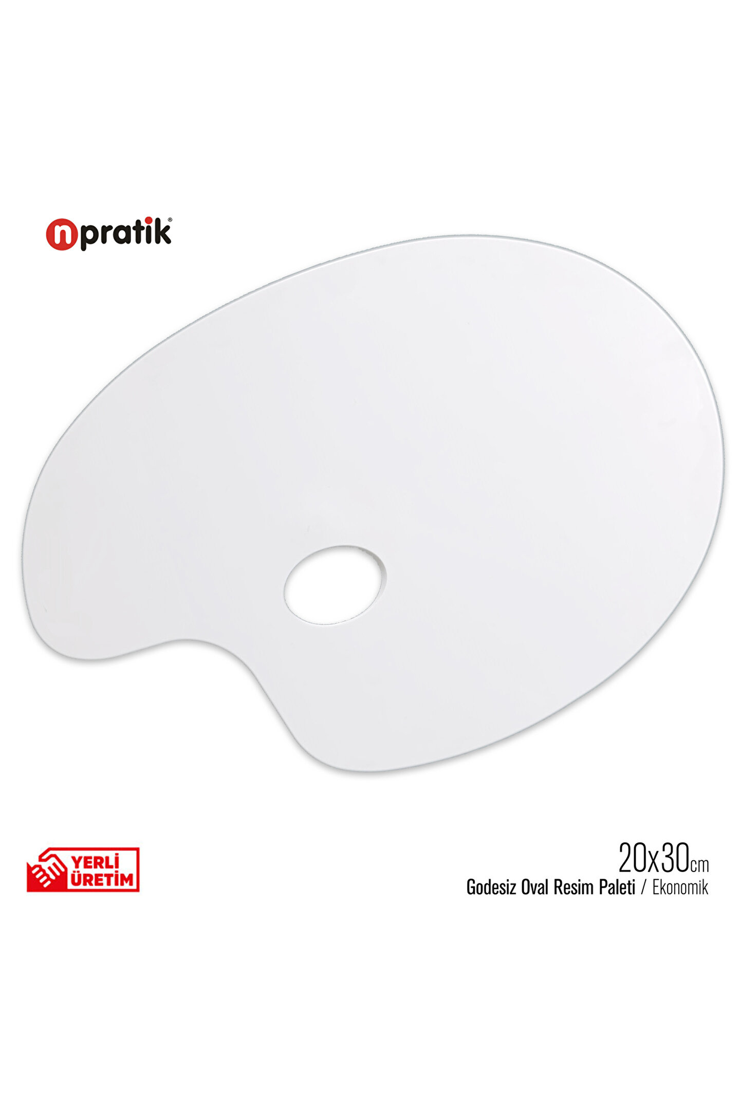 N'Pratik Sanatsal Oval Akrilik Düz Palet Yağlı Boya, Guaj Boya ve Akrilik Boya İçin İdeal 20 x 30 cm.