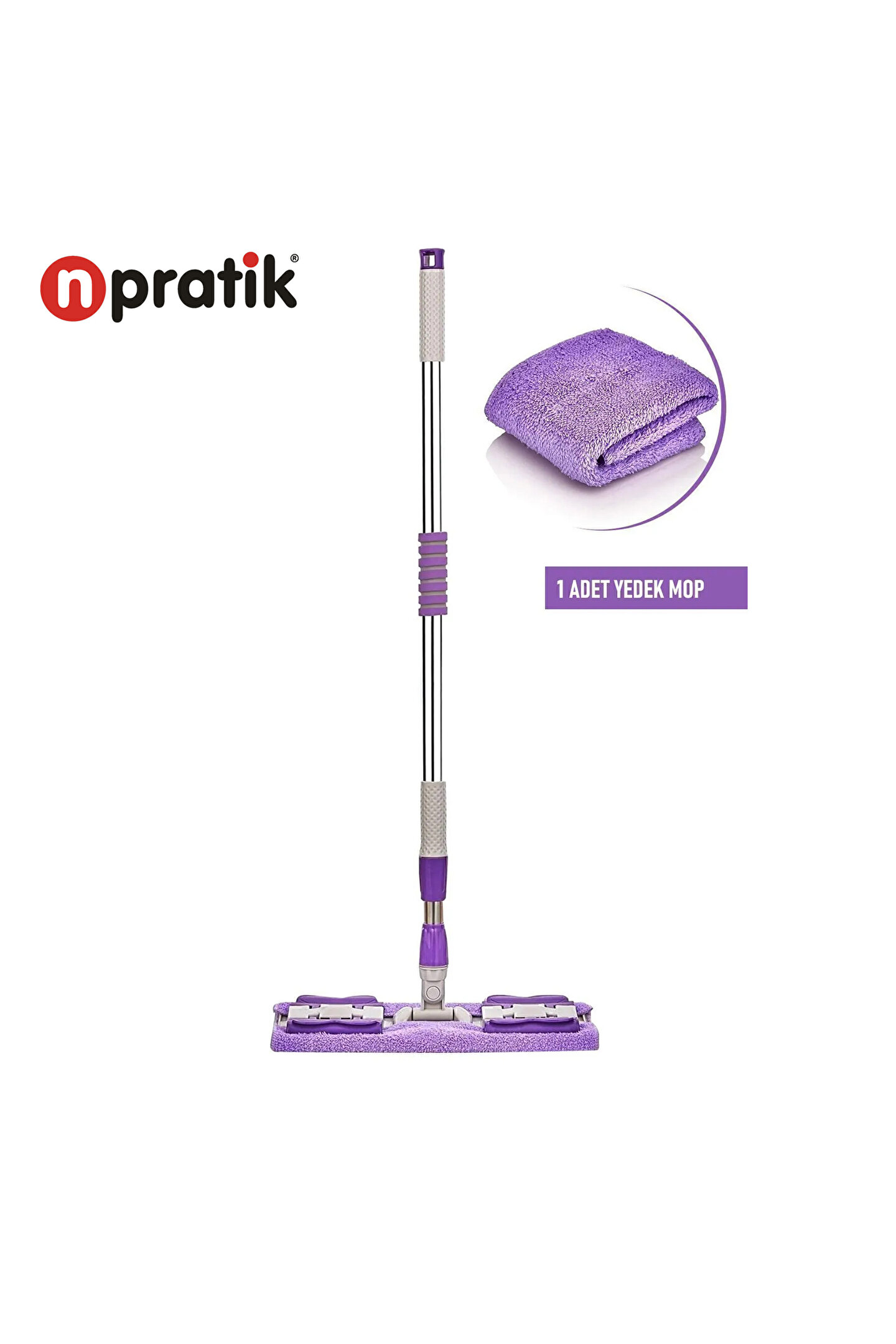 N'Pratik Yer Mopu Fayans Duvar Yüzey Temizlik Mikrofiber Mandallı Teleskopik Mop 1 Adet Yedek Bez Hediyeli