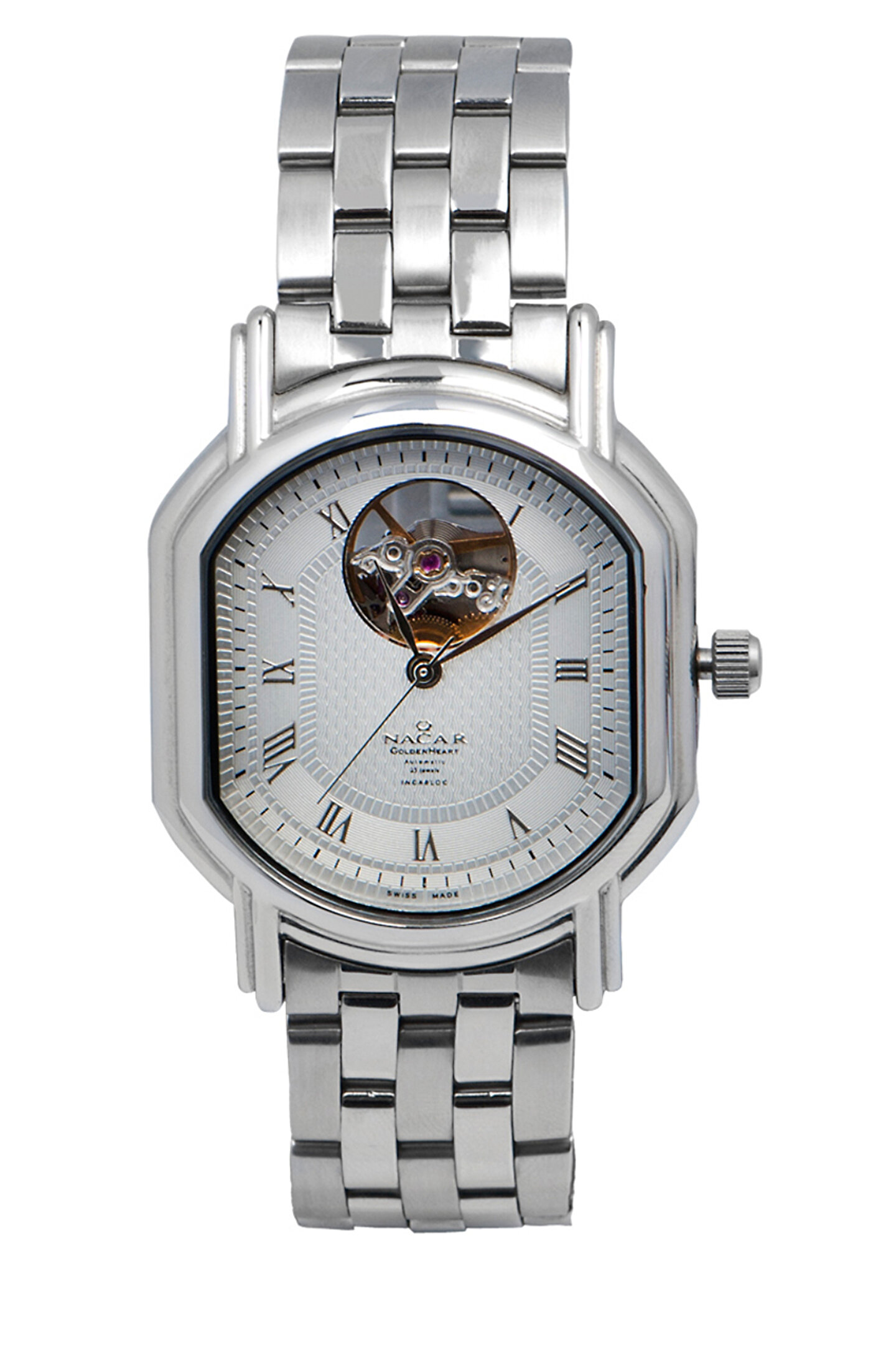 Markası: Nacar Cinsiyet: Erkek Makine : Otomatik(İSVİÇRE) Kasa Cinsi: Çelik Kasa rengi: Çelik Kordon Cinsi: Çelik Kordon Rengi: Çelik Kadran Rengi: Beyaz Su Geçirmezlik: 3 Atm Kasa Çapı : 35 mm
