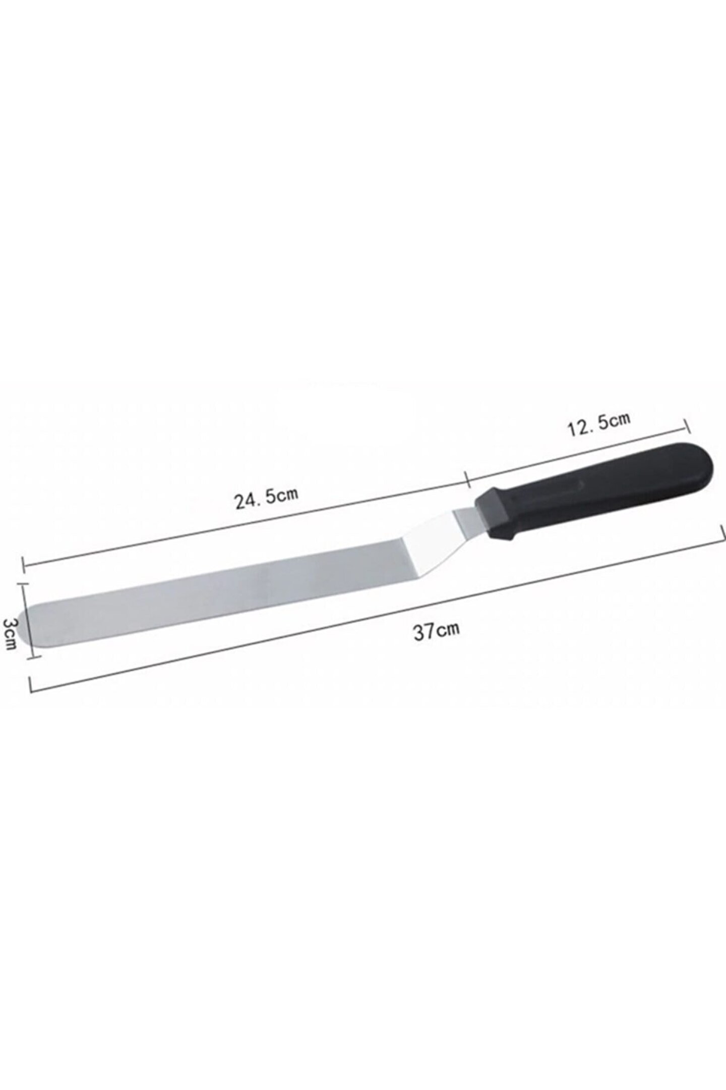 Tek parça halinde gelen bu spatula, mutfakta ihtiyacınız olan pratikliği ve işlevselliği sunar; Paslanmaz çelik malzemesi sayesinde uzun ömürlü kullanım ve kolay temizlik imkanı sağlar; 25 cm uzunluğundaki geniş yüzeyi ile büyük kek ve pastaları rahatça sıvayabilir, servis yapabilirsiniz;