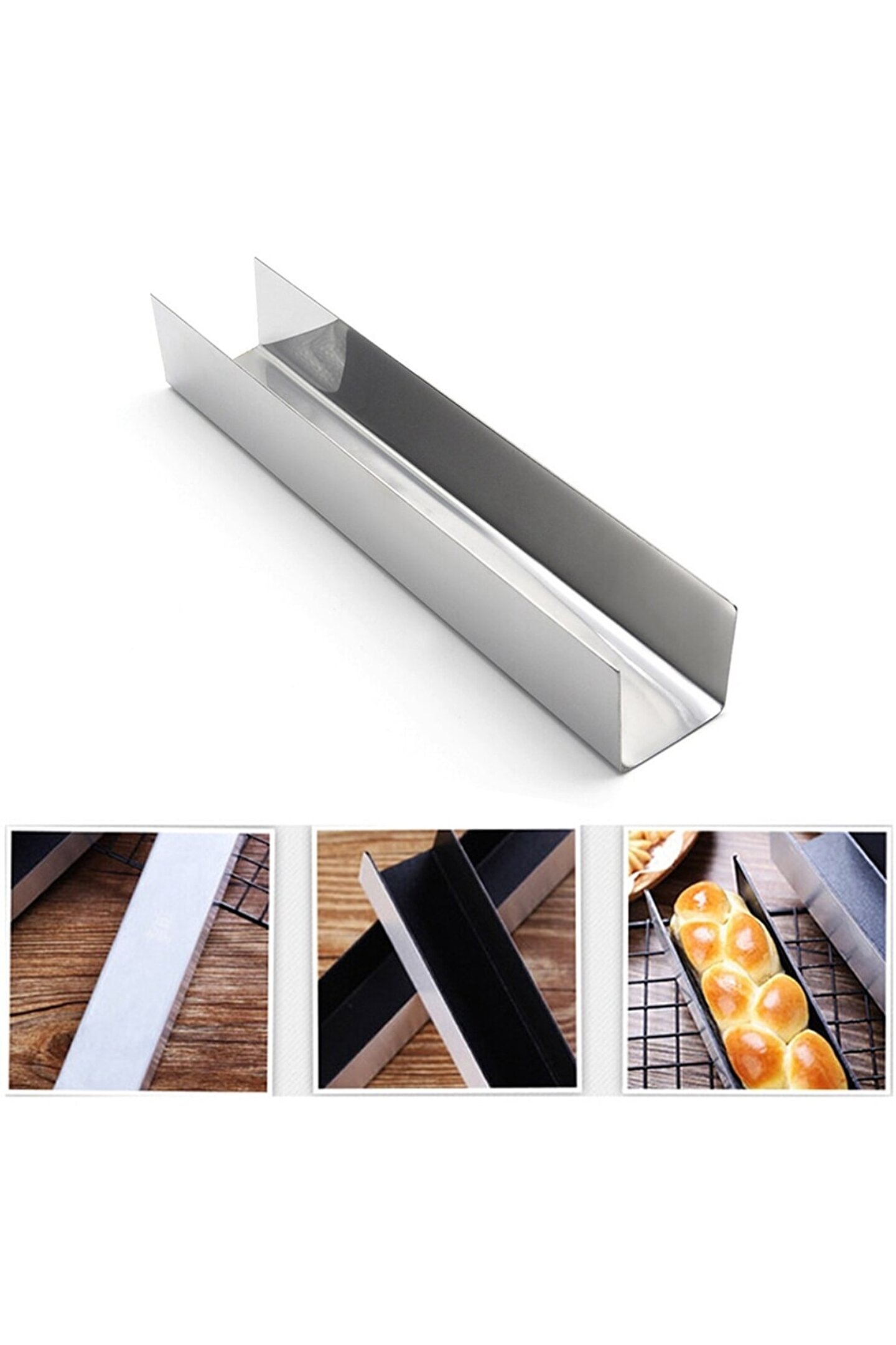 Paslanmaz çelik malzemesi sayesinde uzun ömürlü kullanım ve kolay temizlik sunar; U şekli bisküvi ve ekmek yapımında ideal bir seçimdir, pişirme sırasında şeklini korur; Fırın ve kek kalıbı olarak da kullanılabilen bu ürün, mutfakta çok yönlülük sağlar; Dayanıklı yapısı ile sık kullanıma uygun olup, pişirme işlemlerinizde size yardımcı olur;