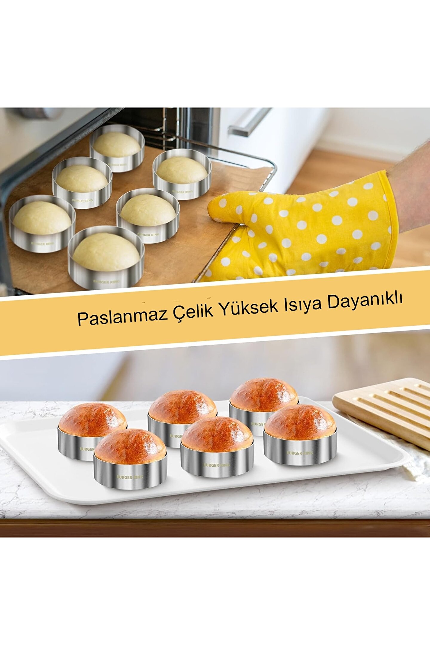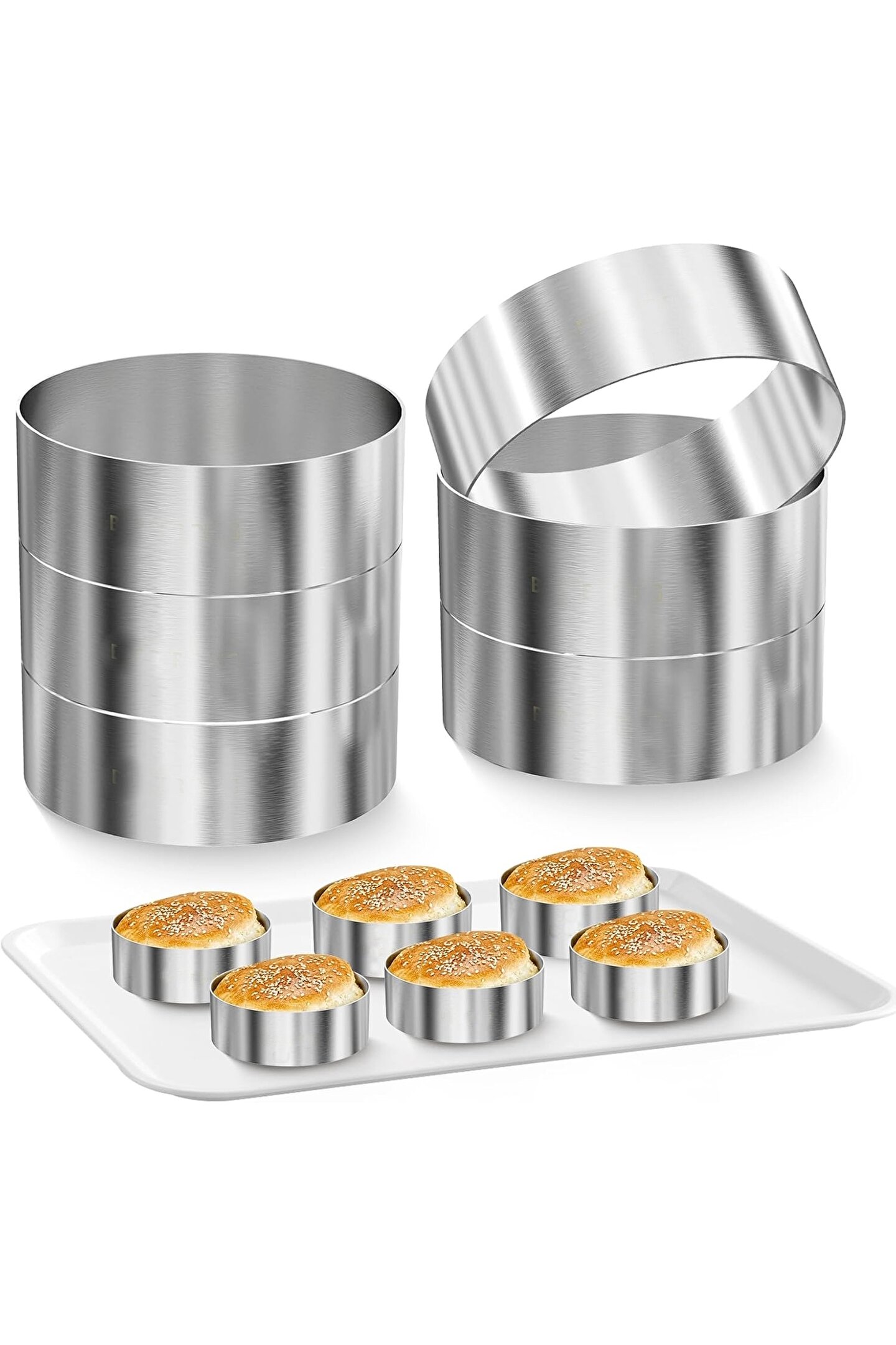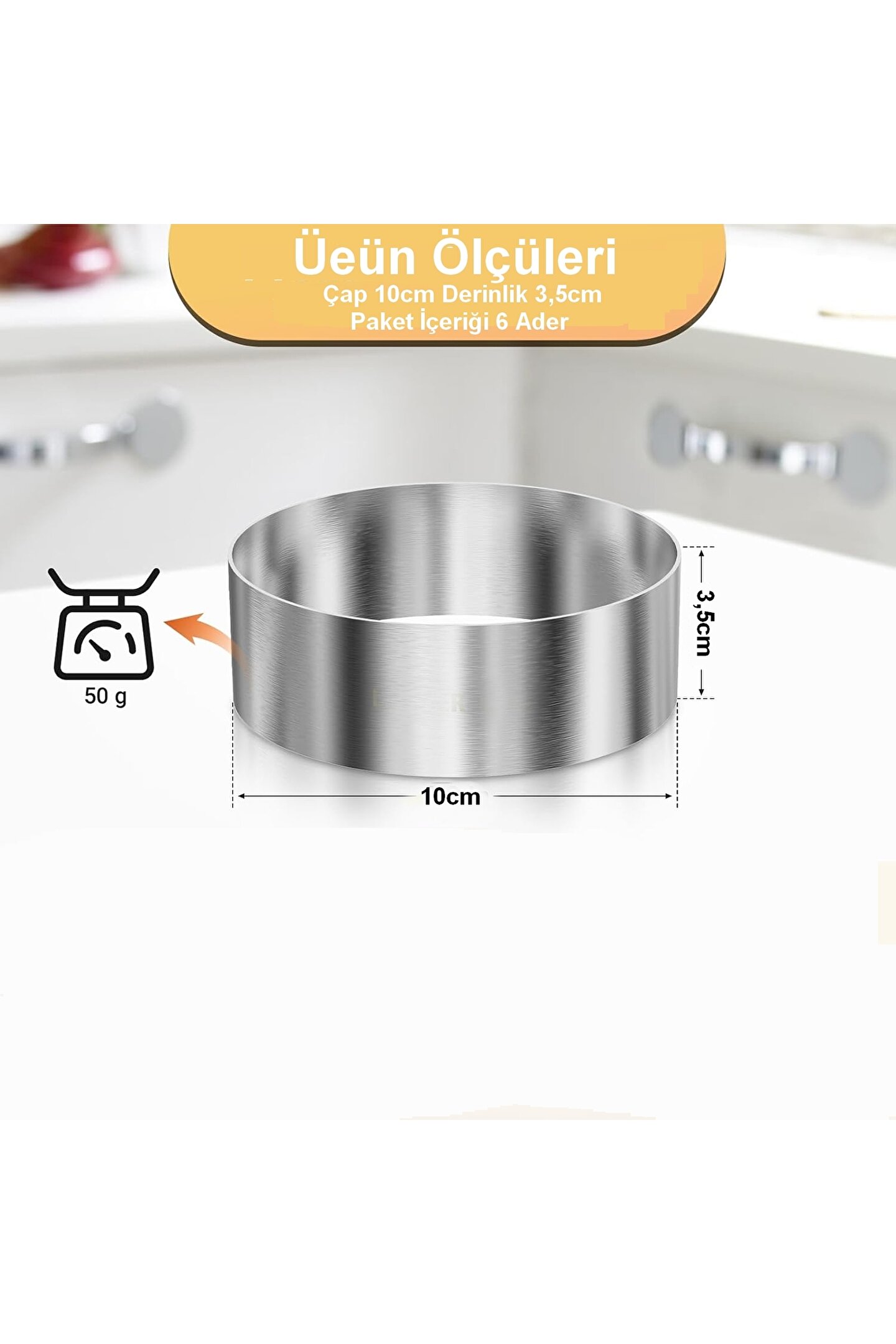 Nar kalıp Narkalıp Yuvarlak Hamburger,Omlet Pasta Pişirme Kalıbı Çap 10cm Derinlik 3,5cm 6 Adet