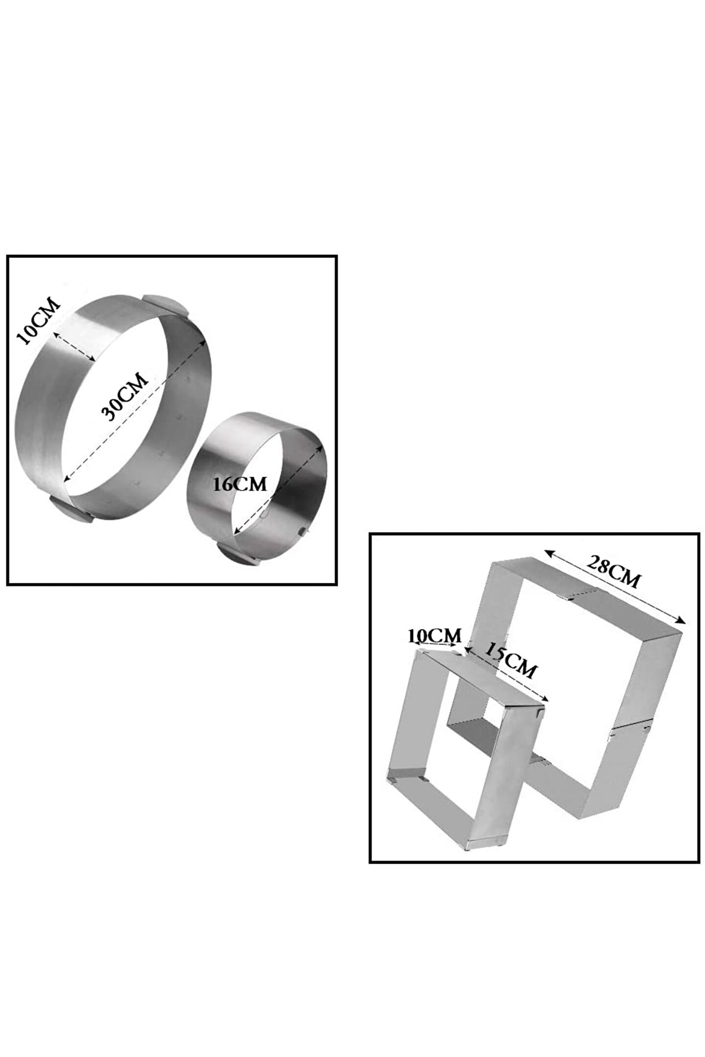 Paslanmaz Çelik Ayarlanabilir Kek Kalıbı Kare 15cm; 28cm Derinlik 10cm Yuvarlak 16cm; 30cm Derinlik 10cm Kare Alık 30CMX30CM;