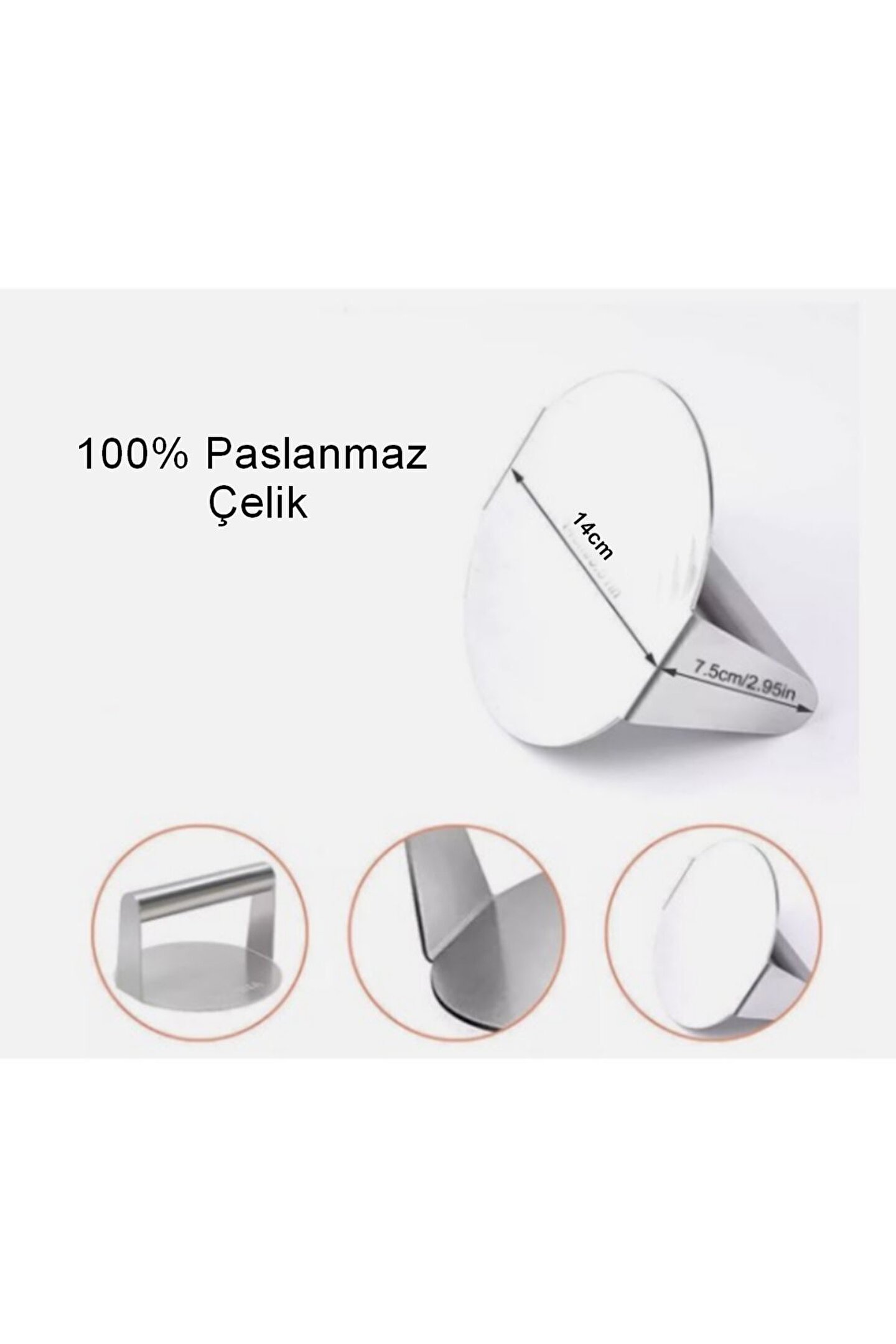 Gri renk seçeneğiyle modern ve şık bir görünüm sunar, mutfak dekorasyonunuza kolayca uyum sağlar; 14 cm çapındaki yuvarlak tasarımı sayesinde, hamburger ve köfte gibi küçük et parçalarını mükemmel şekilde presleyerek şekil verir; Paslanmaz çelik malzemesi ile dayanıklılık ve uzun ömürlü kullanım sunar, sık kullanımlarda dahi formunu korur; Narkalıp yapısı sayesinde etlerinizi eşit şekilde pişirir ve lezzetli sonuçlar elde etmenizi sağlar;