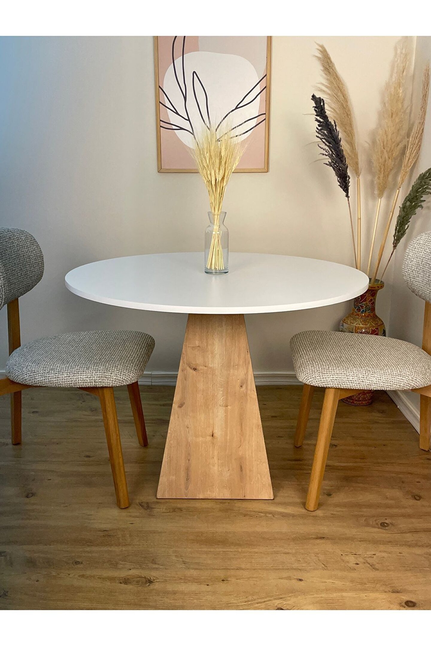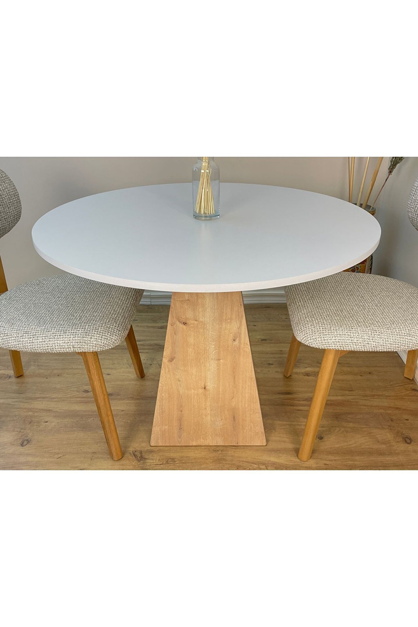 ÜRÜNÖZELLİKLERİ: Üst tabla ve ayak kısmı 1. ; sınıf MDF’den üretilmiştir. ; Boyut: Üst Tablamız 100 cm çapındadır.. ; Masamızın yüksekliği ise 75 cm standarttır. ; Renk: Üst tablamız beyaz lam MDF olup suya dayanıklıdır ve kolayca silinebilir. ; Ayak kısmı meşe desenli lam MDF'dir. ; Sağlığa zararsız ve silinebilirdir. ; AHŞAP BAKIMI: Mobilyalarınızı nemli bezle silerek temizleyebilirsiniz. ; Direkt güneş ışığından koruyunuz. ; Sıcak yüzeylerin ve suyun uzun süreli yüzeye temasından kaçınınız. ; TESLİMAT VE KURULUM: Bu ürünün teslimatı ücretsizdir. ; Üst tabla ve ayak kısmı 2 ayrı parça halinde gönderilmektedir. ; Demonte olarak tarafınıza ulaştırdığımız ürünümüz, yanında gönderdiğimiz 4 adet vida ile basit bir şekilde monte edilebilir. ; Sade ve şık tasarımı, minimalist ve ergonomik özellikleri ile eviniz modern bir dokunuş katacak yuvarlak ahşap masa. ; Yuvarlak mantar görünümlü masamız yaşam alanlarınızı güzelleştirecek. ; Masamızı yemek odası, oturma odası, çalışma odası, balkon veya ofis gibi birçok farklı alanda rahatlıkla kullanabilirsiniz. ; Ürünümüzü ilk aşamadan son aşamaya kadar atölyemizde hazırlamakta olup, ürüne ait bütün fotoğraflar kendimize aittir.;