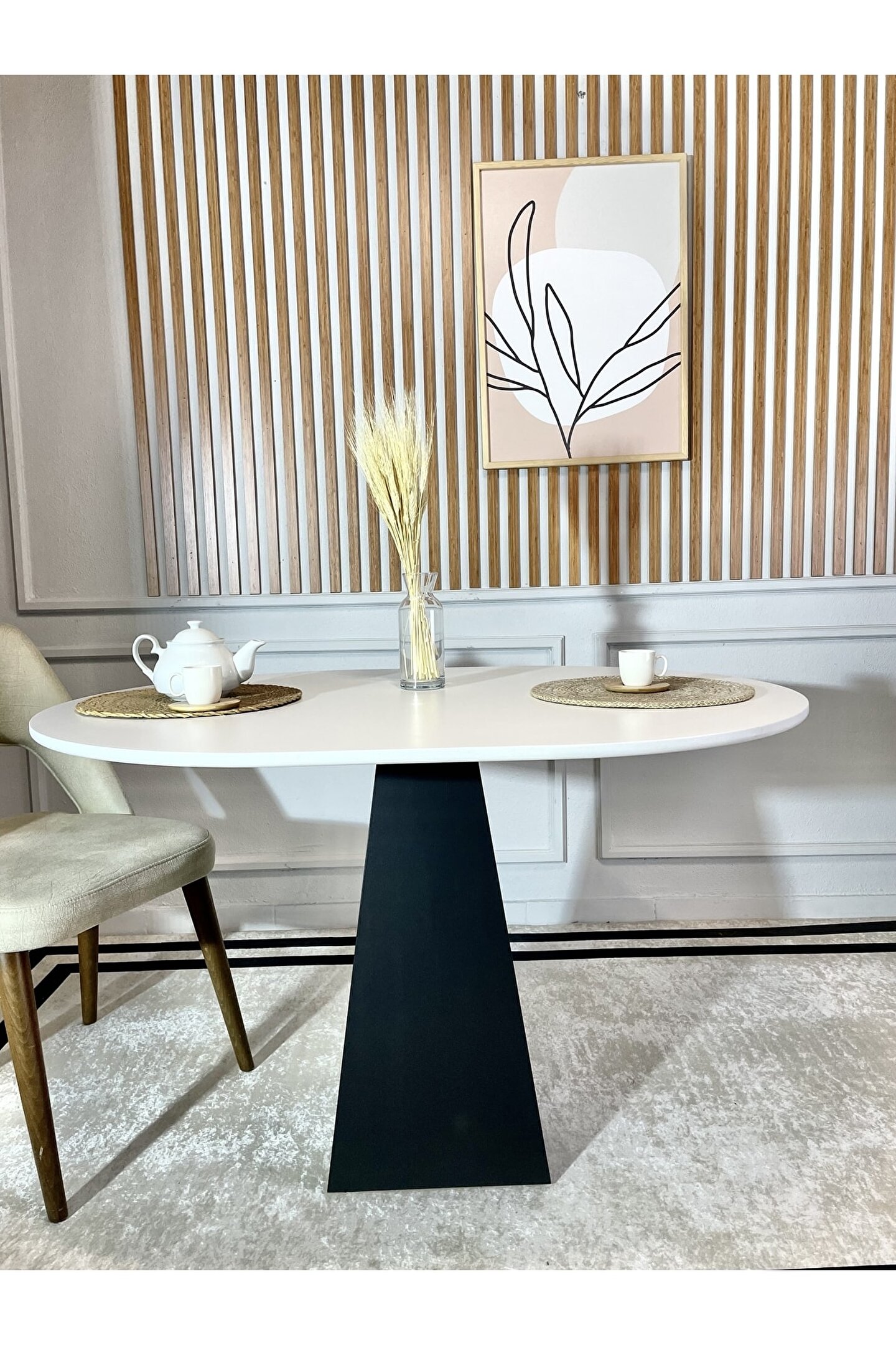 Narkissos Dizayn 120x90 Cm Oval Siyah Ahşap Yemek Masası - Fungi Serisi - Balkon Ve Kafe Masası