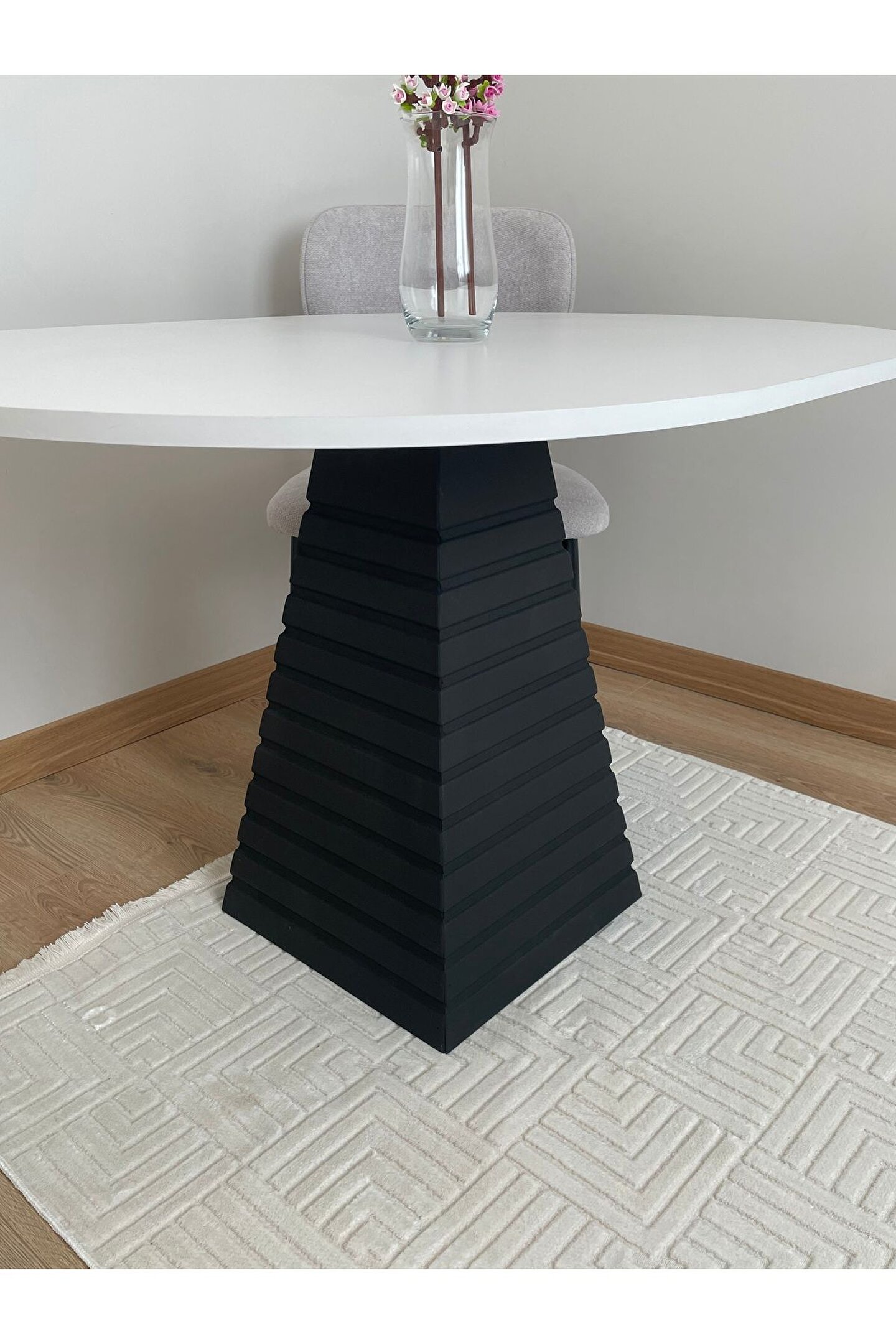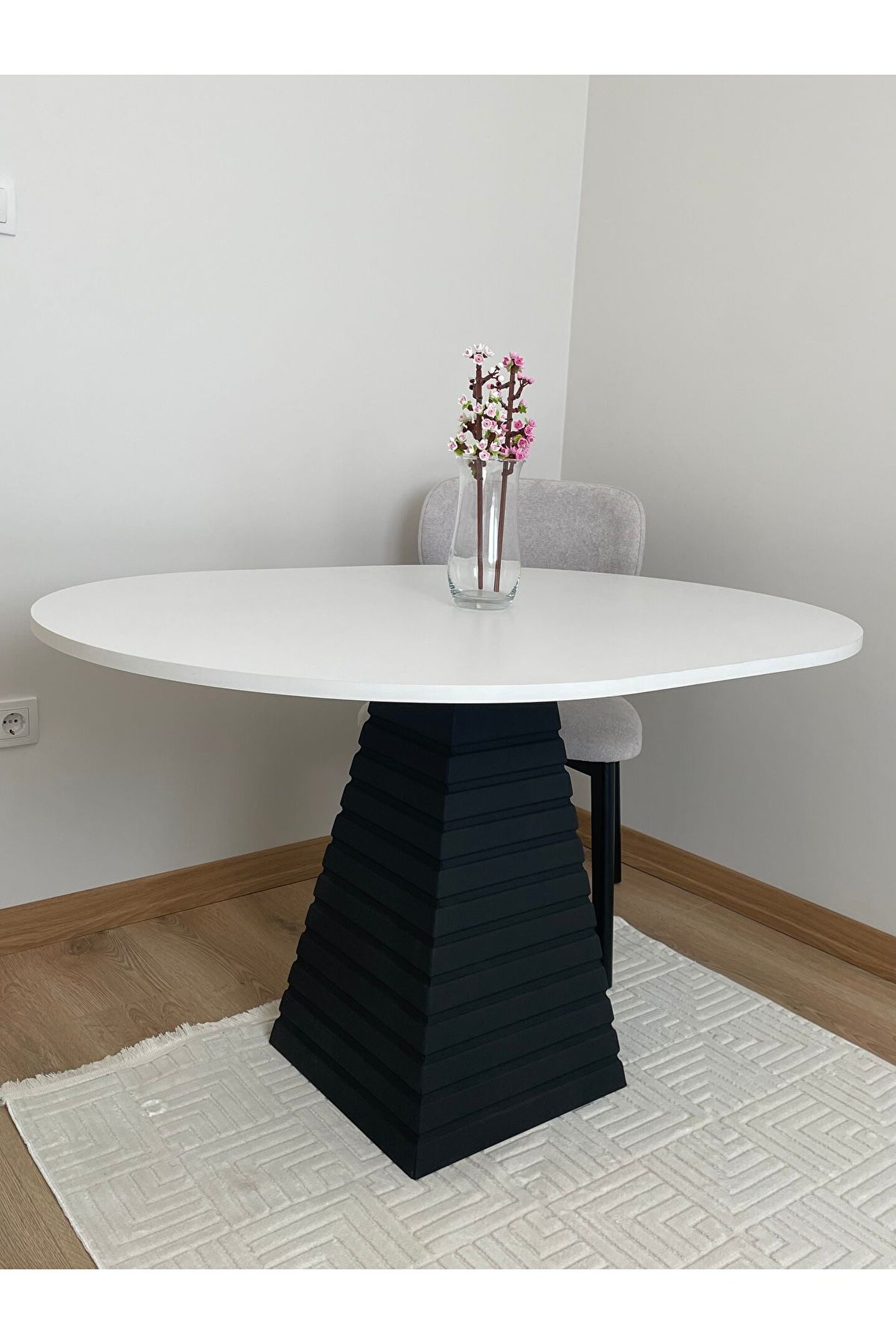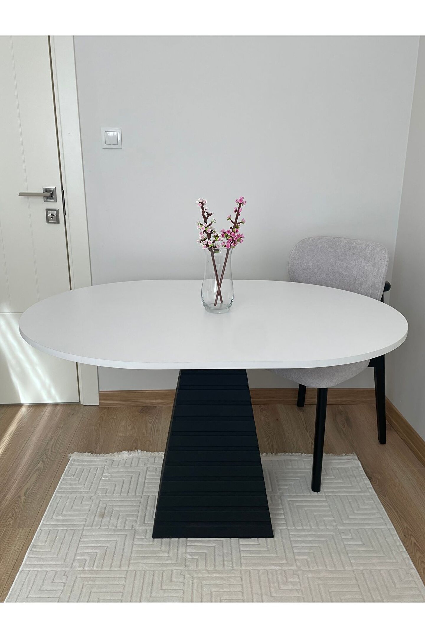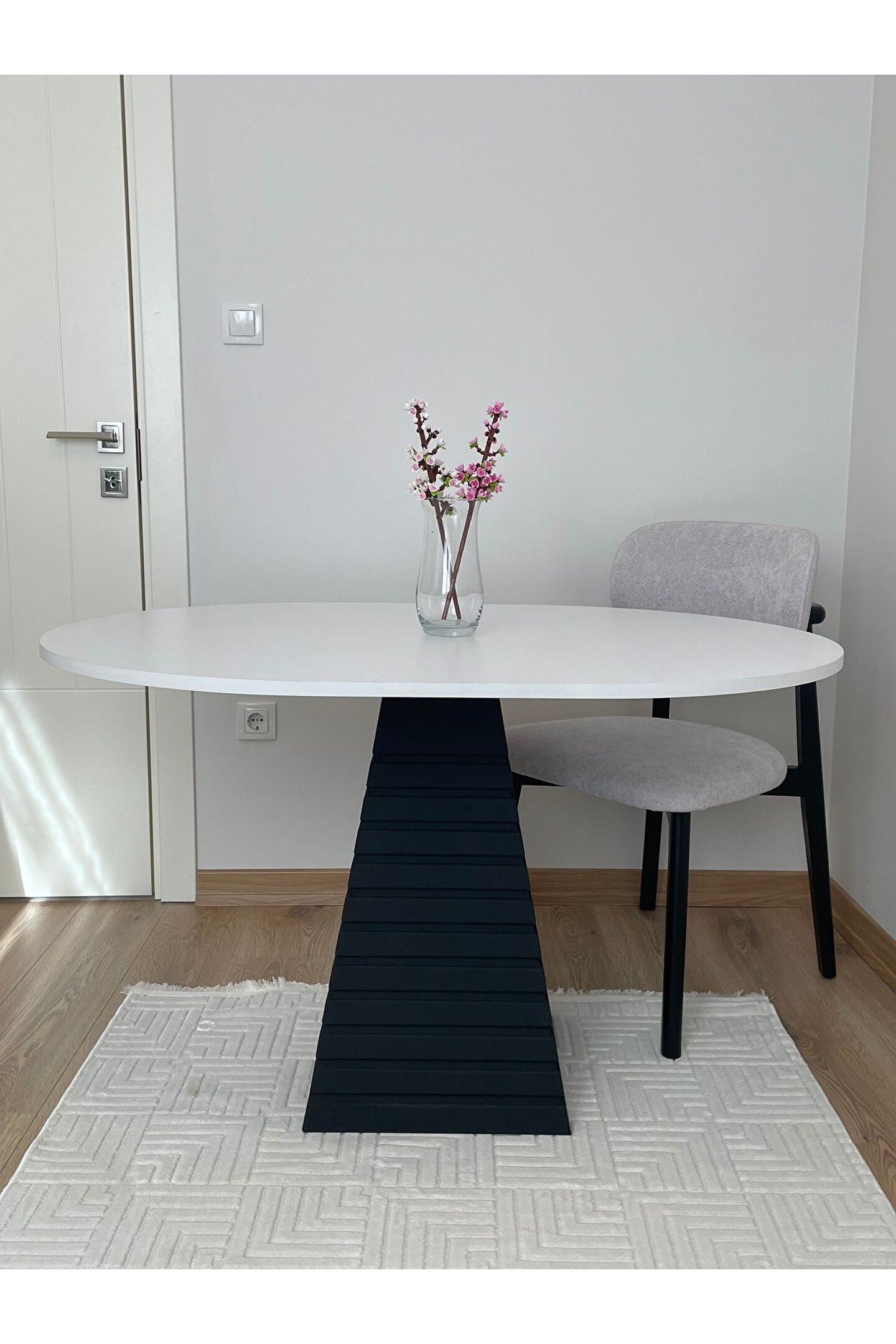 Narkissos Dizayn 120x90 cm Oval Siyah Eksen Ahşap Yemek Masası - Fungi Serisi - Mutfak Balkon Kafe masası