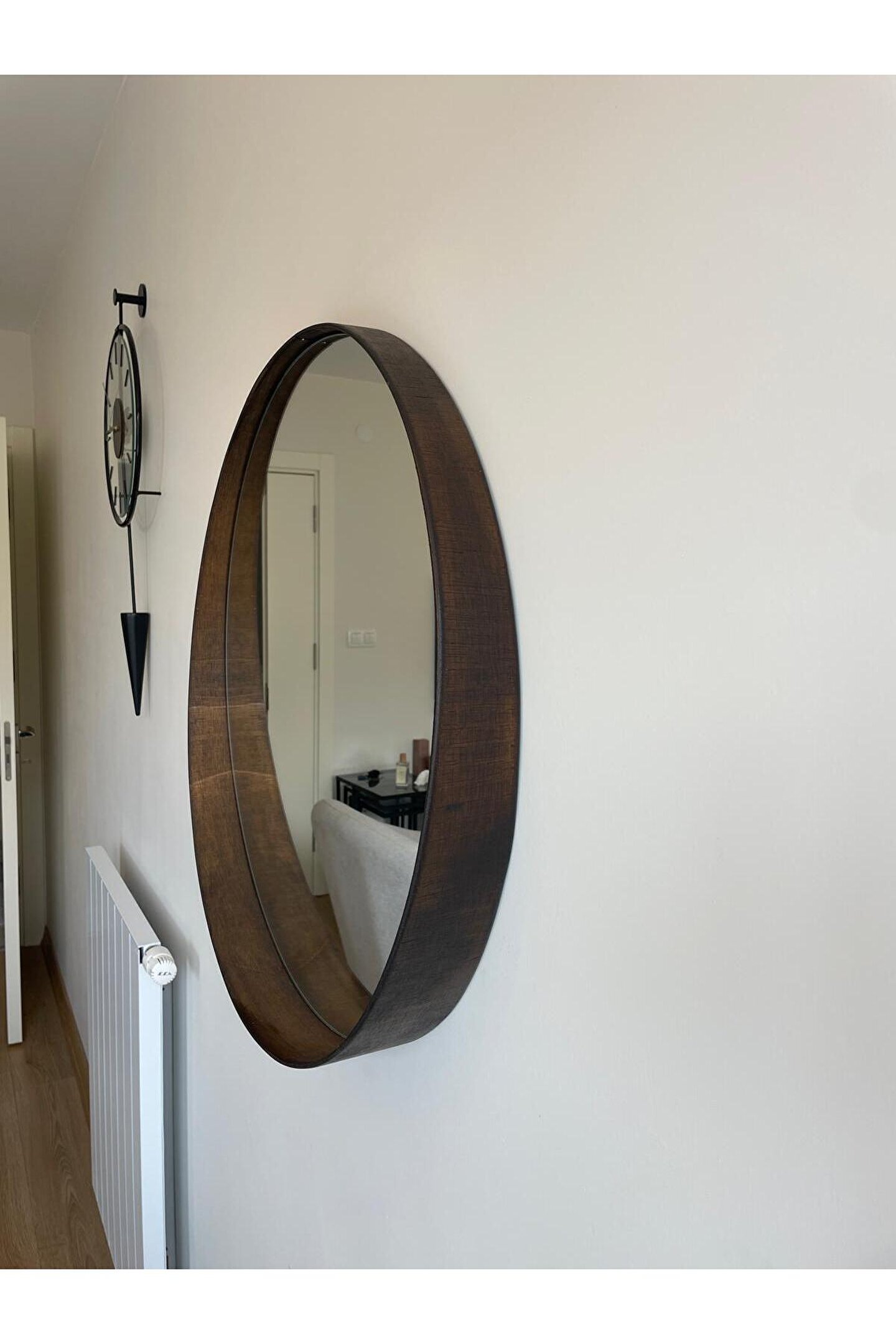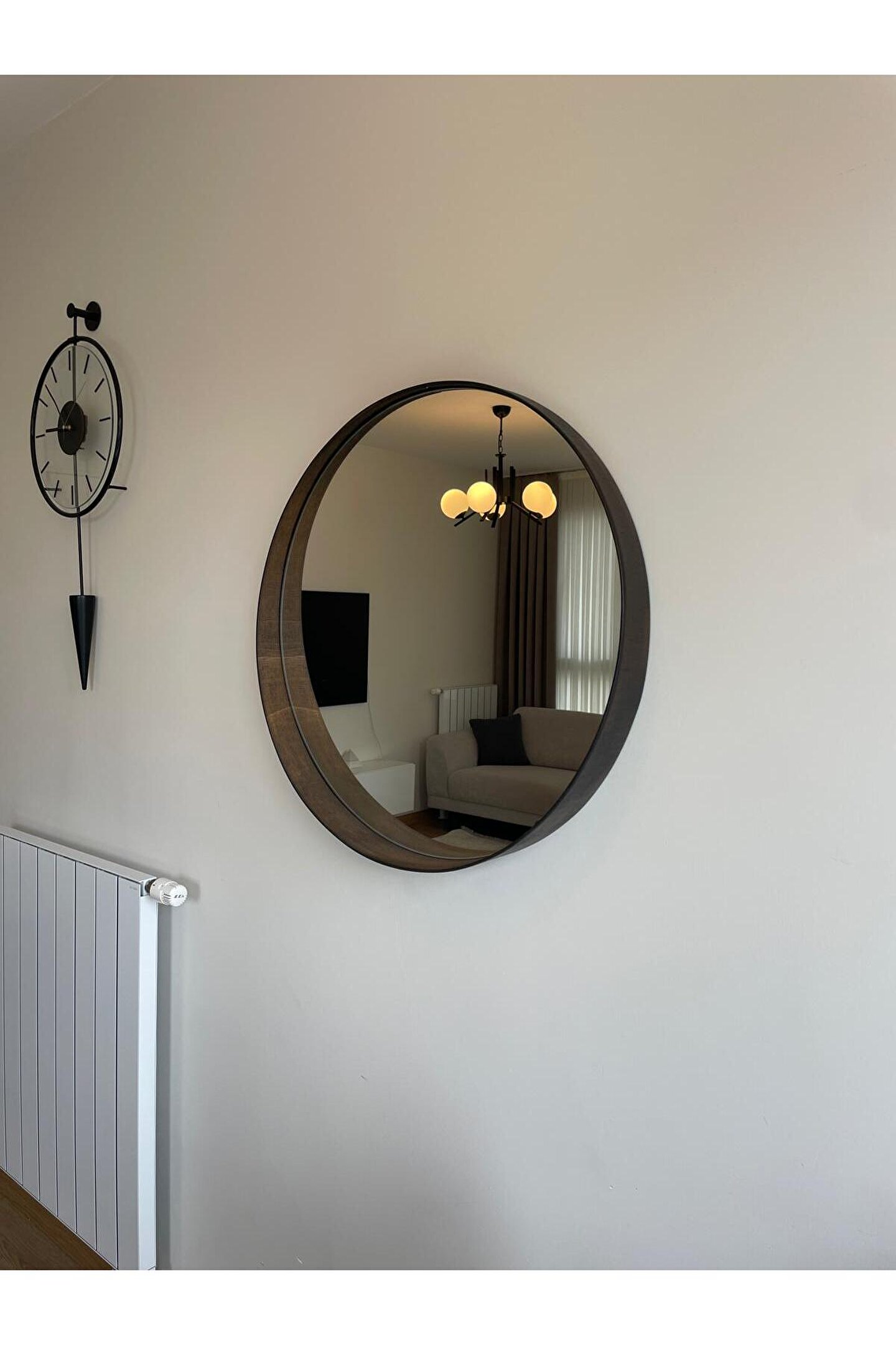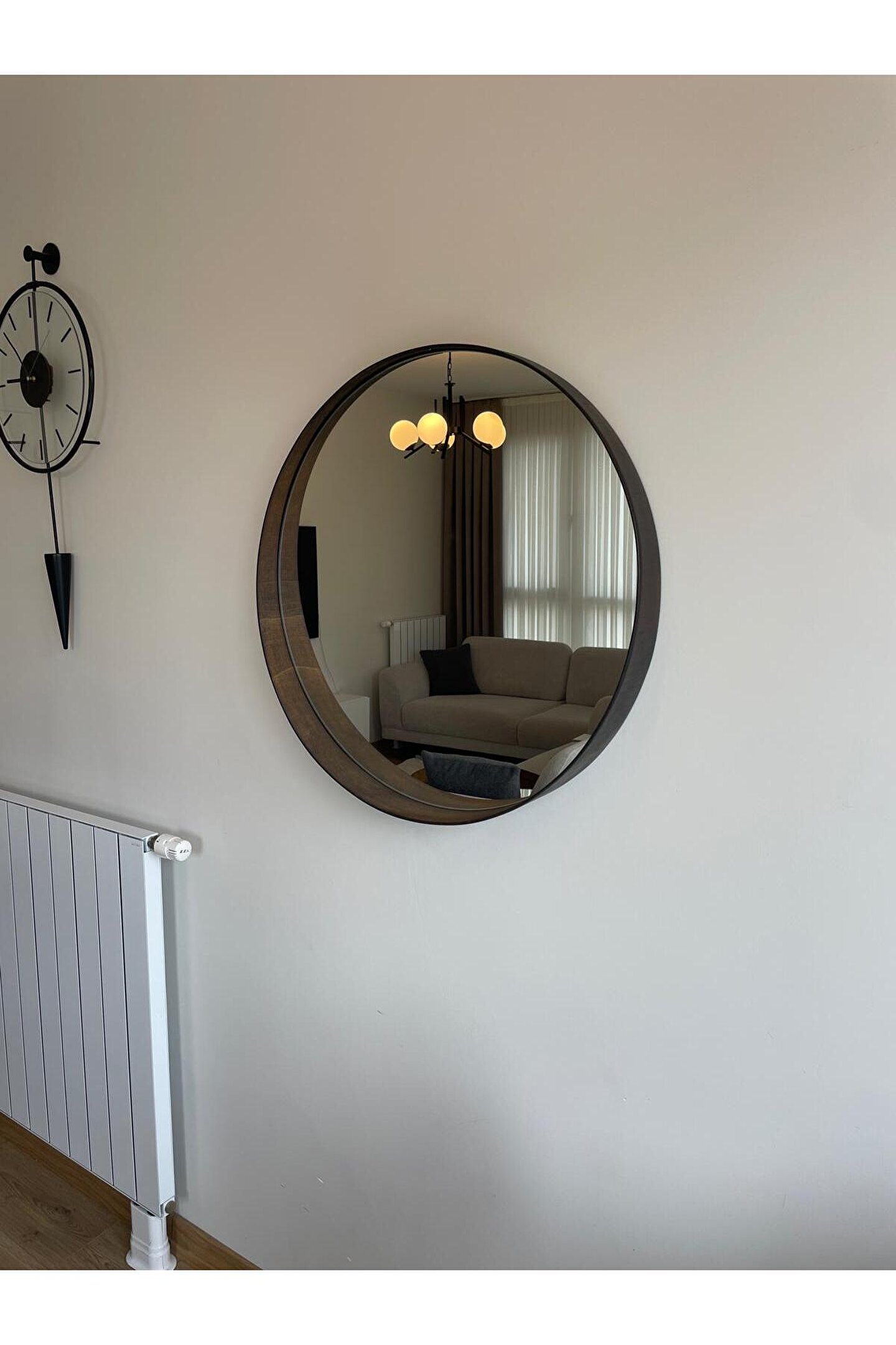 Narkissos Dizayn 70 cm Ceviz Ahşap Çerçeveli Dekoratif Kavis Ayna