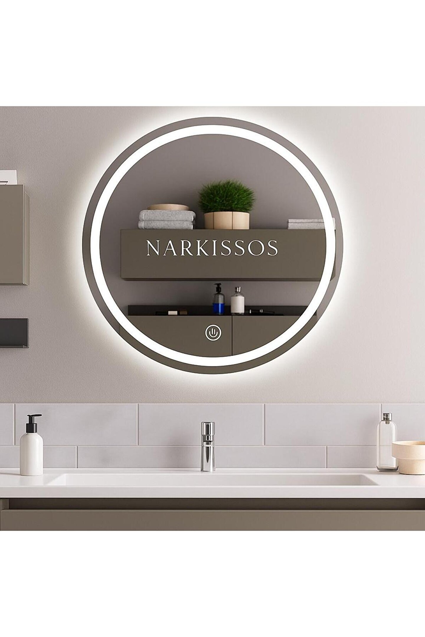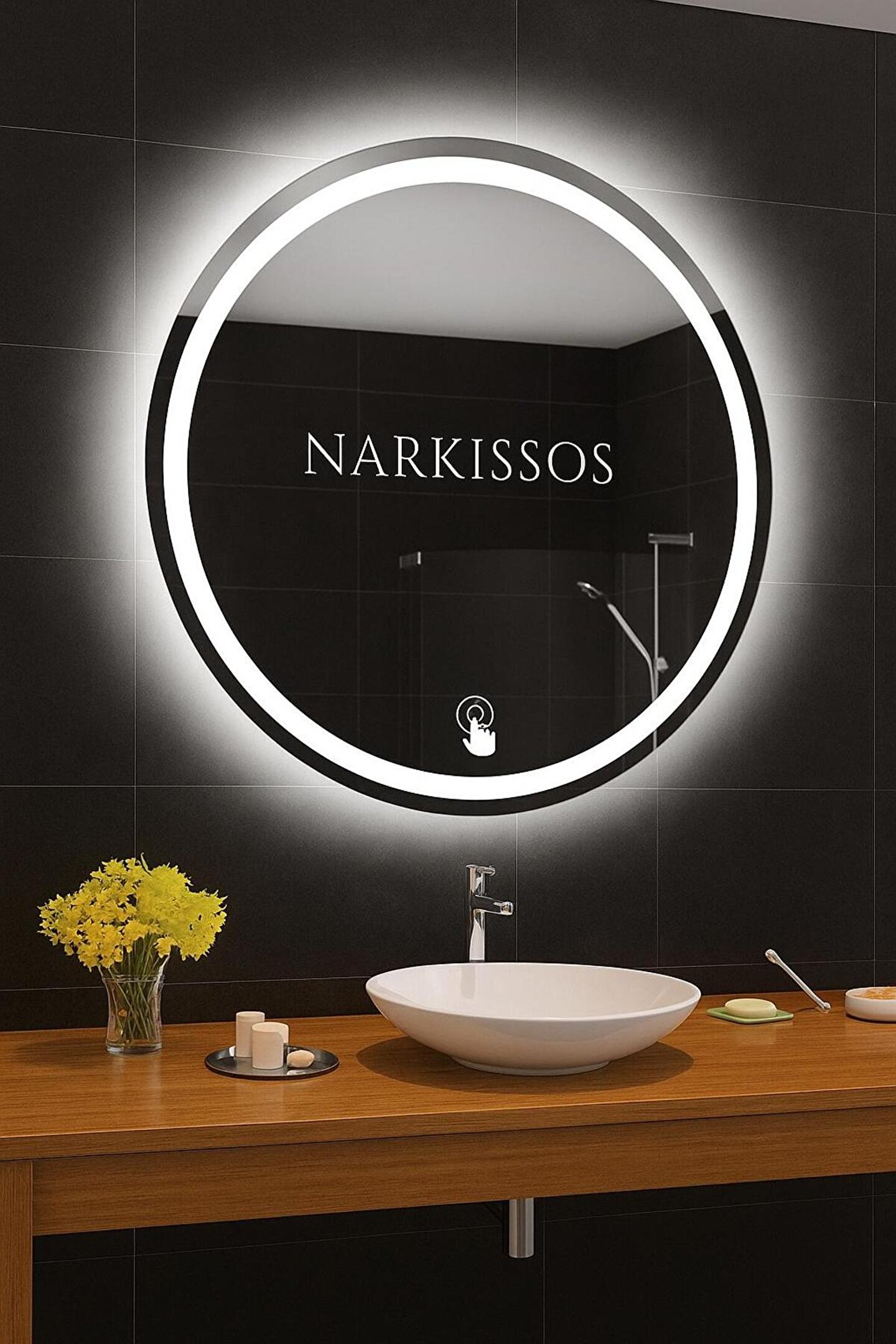 Narkissos Dizayn 90 cm DOKUNMATİK BEYAZ LEDLİ BANYO AYNASI KUMLAMALI -SALON-KAFE LED AYNA