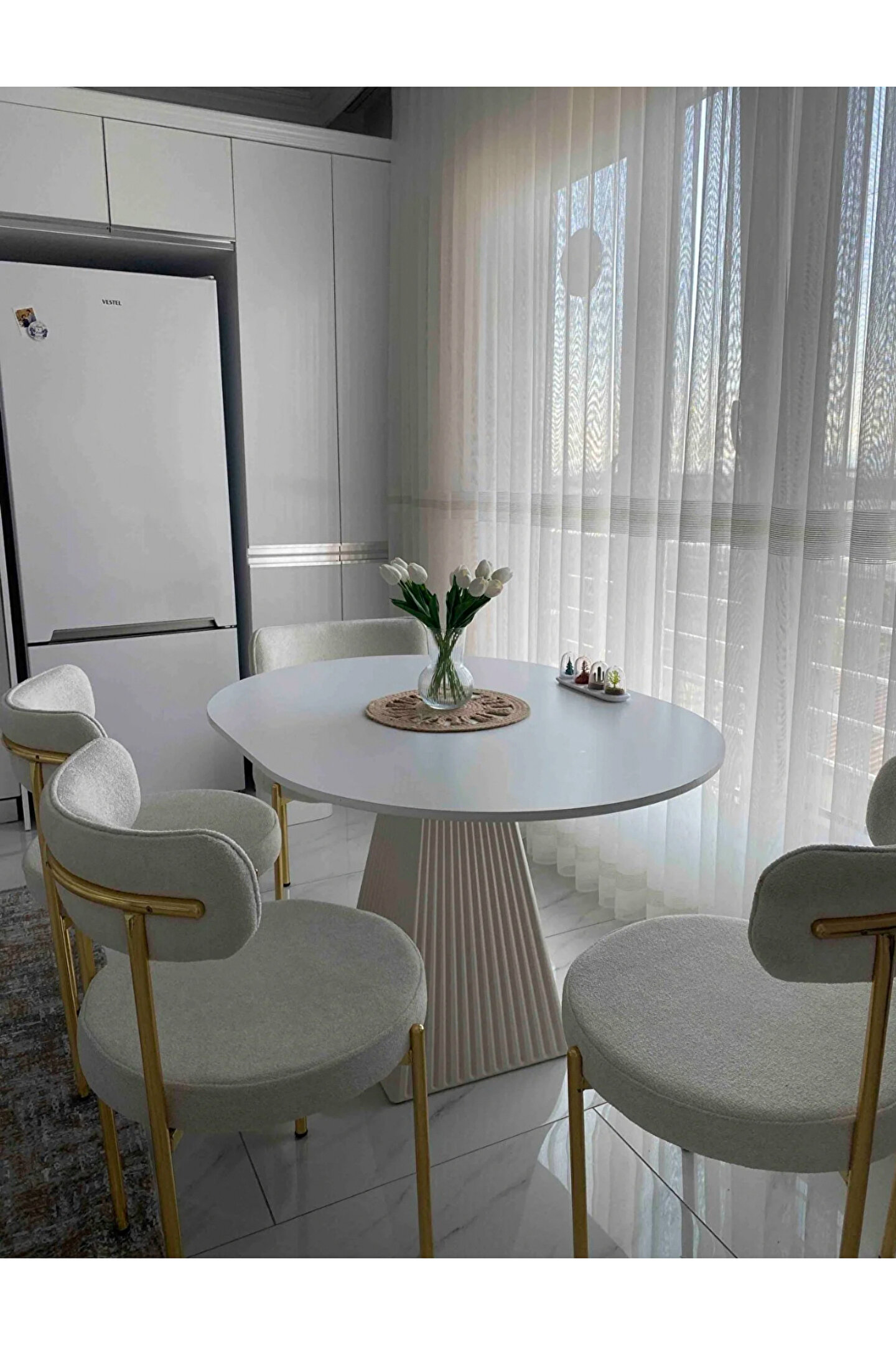 ÜRÜNÖZELLİKLERİ: Üst tabla ve ayak kısmı 1. sınıf MDF’den üretilmiştir.; Masamızın yüksekliğiise 75 cm standarttır.; Diğer ölçü seçeneklerimiz mevcuttur.90 cm çapındaki masamız - 4 kişilik, 100 cm 4-5 kişilik, 120x90 ise 5-6 kişilik kullanıma uygundur.; Renk: Üst tablamız beyaz lam MDF olup suya dayanıklıdır ve kolayca silinebilir.; TESLİMAT VE KURULUM: Ürünümüz 2 ayrı parça halinde demonte olarak gönderilmektedir .; Masamızı yemek odası,oturma odası, çalışma odası, balkon veya ofis gibi birçok farklı alanda rahatlıkla kullanabilirsiniz.; Ürünümüzü ilk aşamadan son aşamaya kadar atölyemizde hazırlamakta olup, ürüne ait bütün fotoğraflar kendimize aittir.