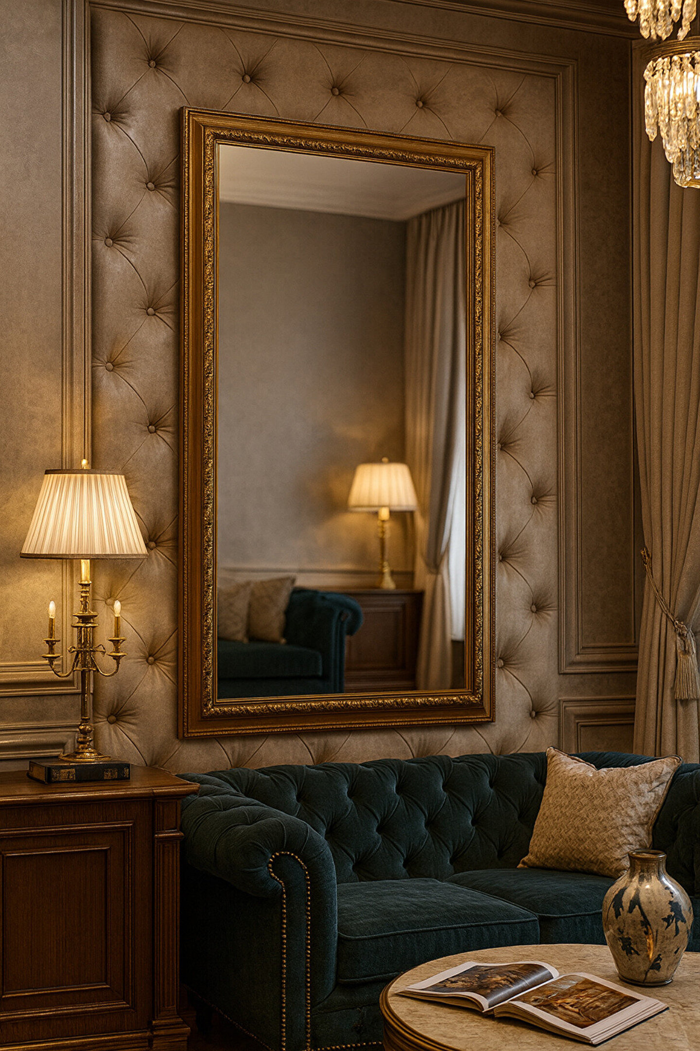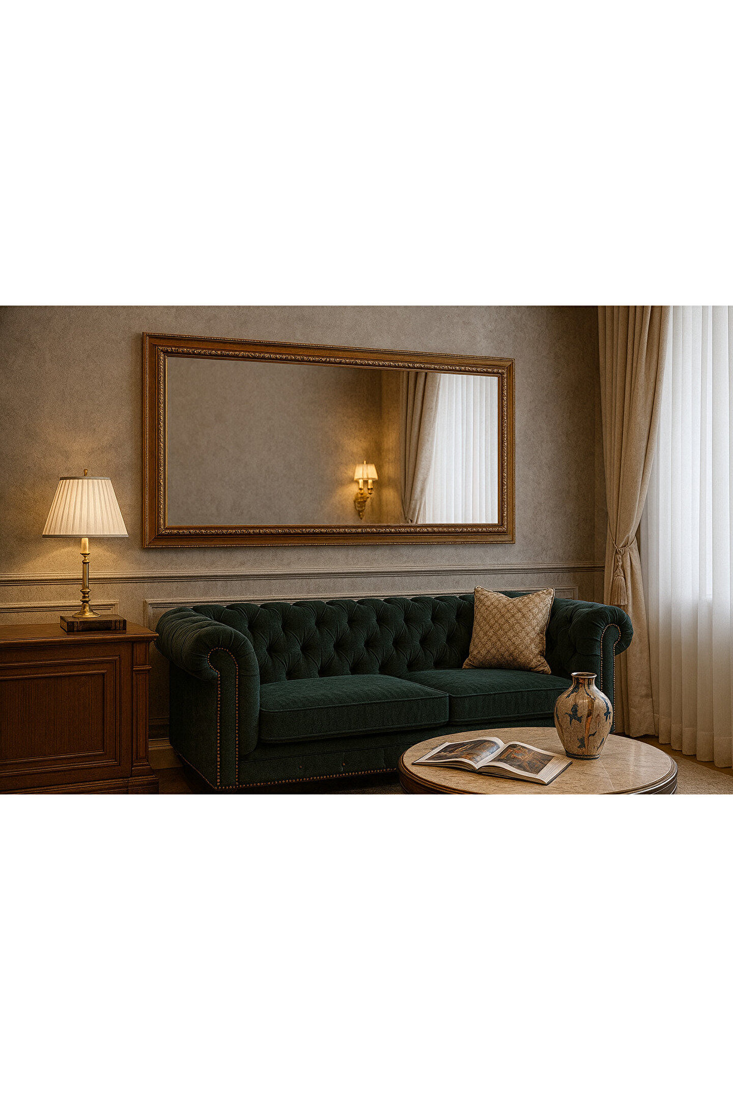 Narkissos Dizayn Altın Varaklı Çerçeveli Ayna - 5cm Çerçeve Genişliği - Gold Ayna - Klasik Varaklı Ayna-Salon Ayna