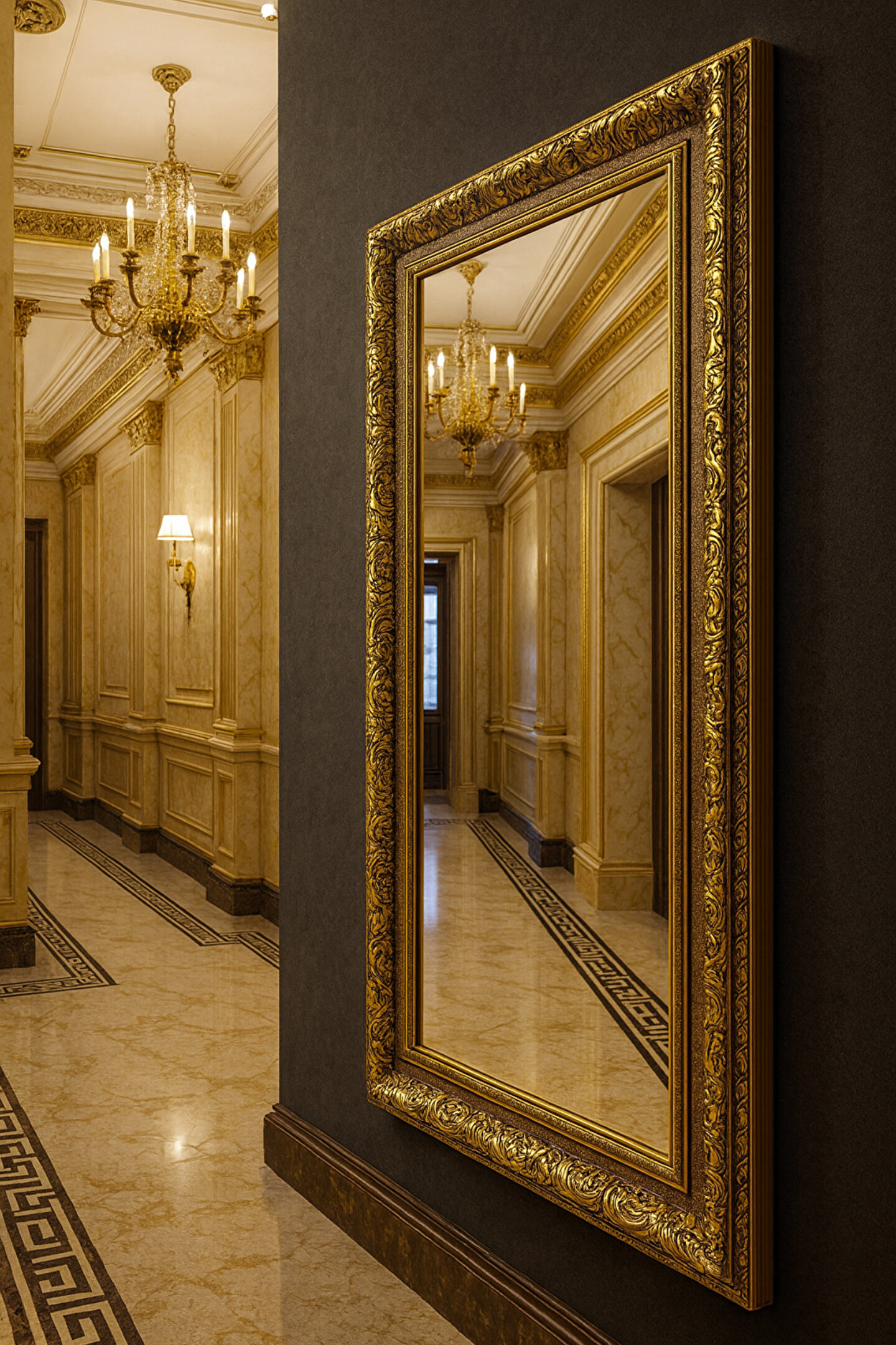 Narkissos Dizayn Altın Varaklı Çerçeveli Ayna - Gold Ayna - Klasik Ayna - Varaklı Ayna - Salon Ayna