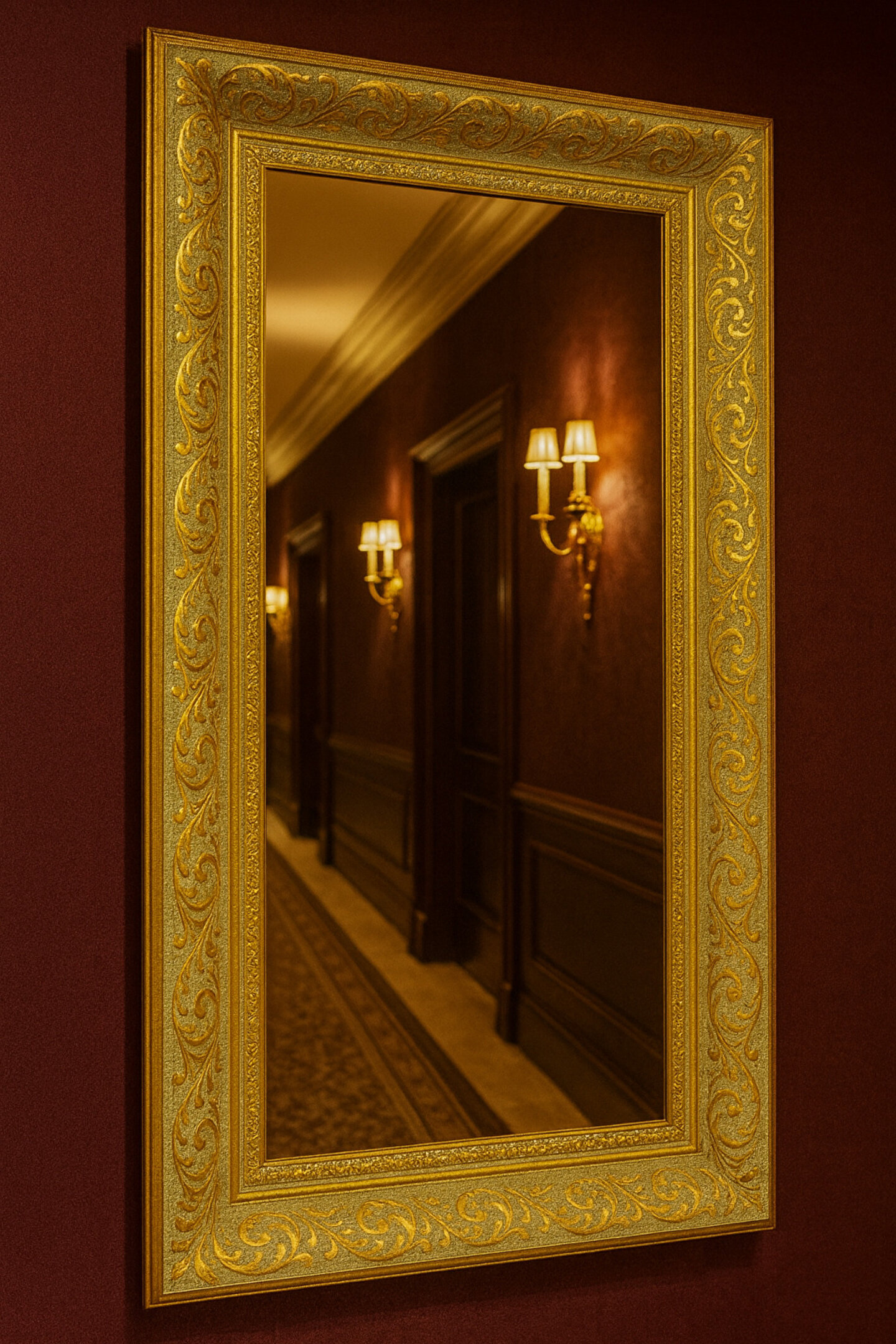 Narkissos Dizayn Beyaz Gold Altın Varaklı Çerçeveli Ayna-6cm Çerçeve Genişliği-Gold Ayna-Klasik Ayna-Salon Ayna