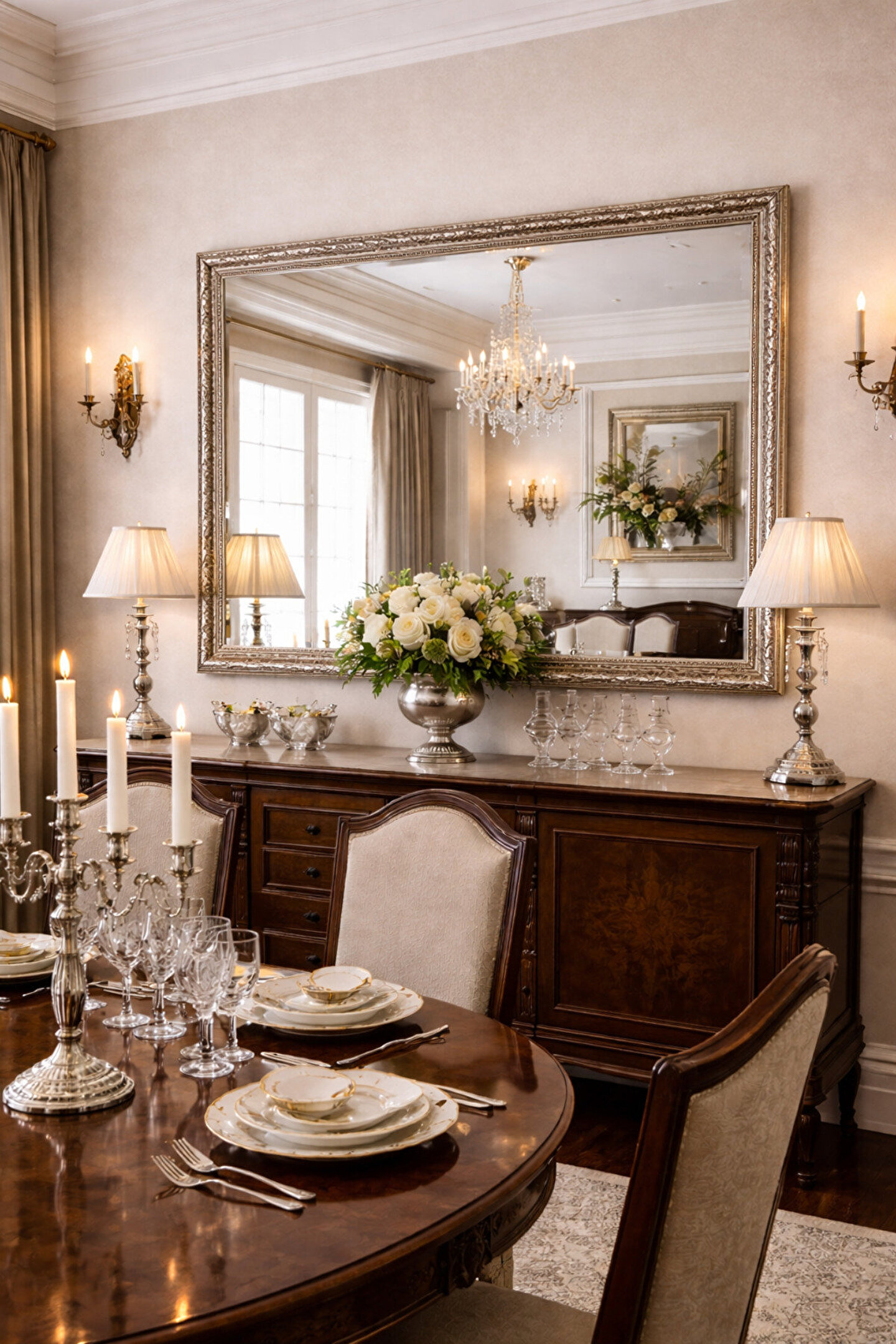 Narkissos Dizayn Gümüş Çerçeveli Ayna-5cm Çerçeve Genişliği-Gümüş Ayna-Klasik Ayna-Varaklı Ayna - Salon Ayna