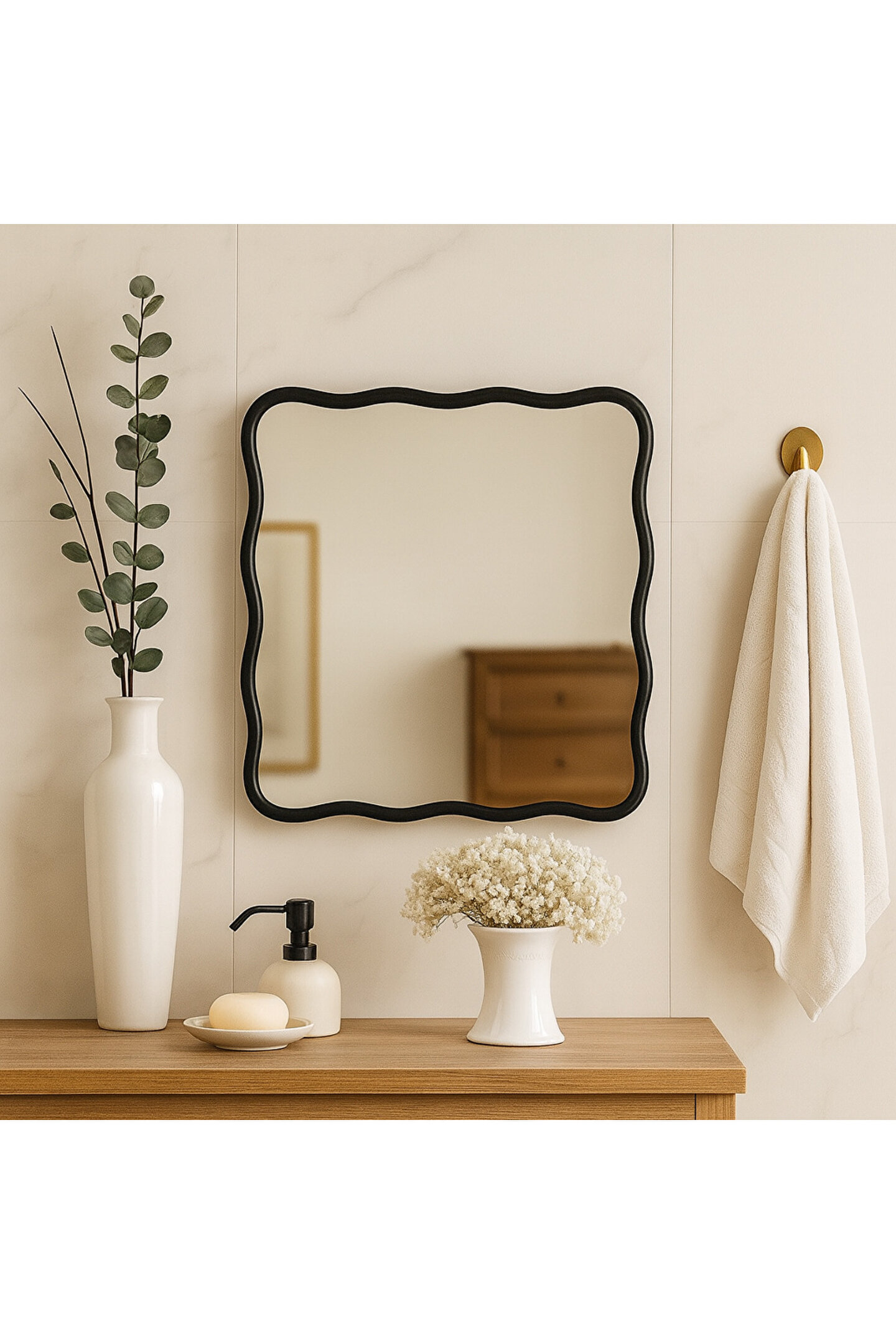 Narkissos Dizayn Kare Dalgalı Duvar Aynası Konsol Aynası Makyaj Aynası
